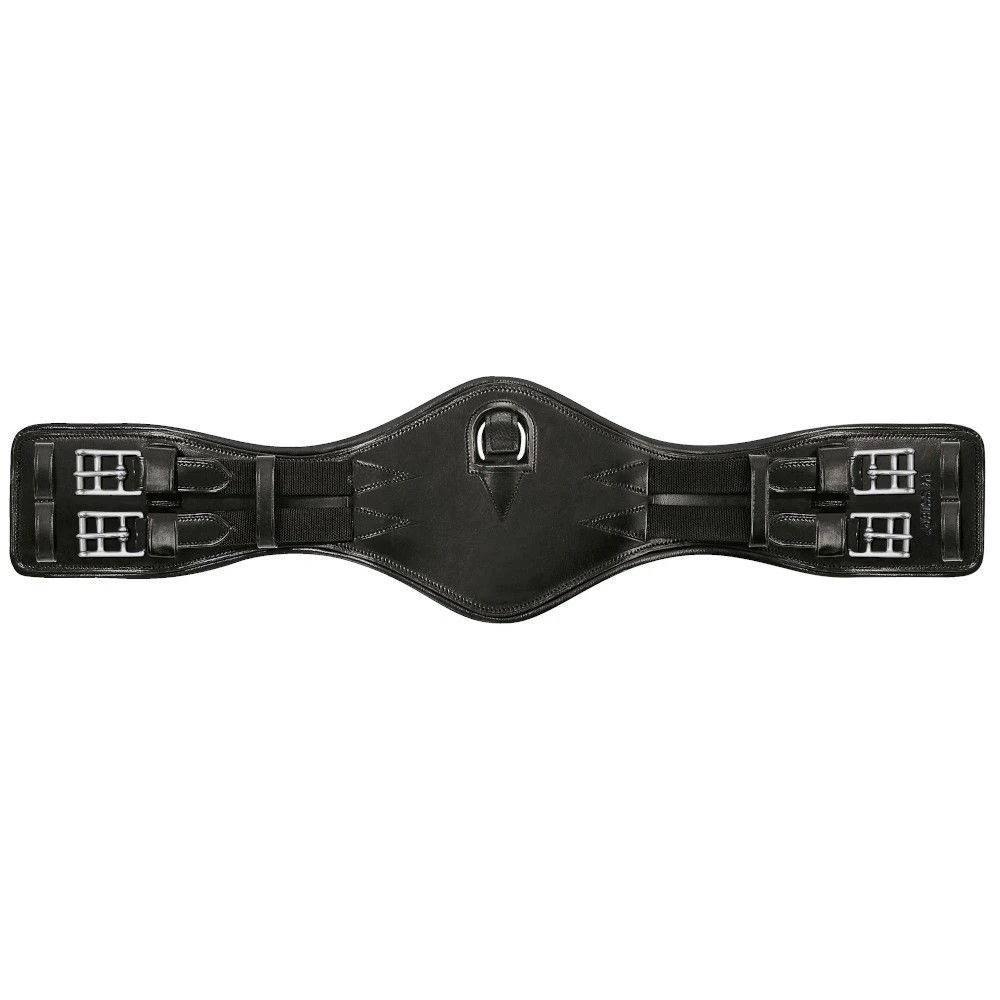 The anatomically shaped leather saddle girth from Passier stands for an excellent fit and makes you and your horse a real eye-catcher. Thanks to the elastic ends on both sides and the widely spread girth center, pressure is optimally distributed so that the girth is also suitable for pressure-sensitive horses. On the front side there is a D-ring in the middle, to which you can attach auxiliary reins or similar. The buckles at the ends of the girth are used to attach the girth to the saddle, so that the girth does not slip and has a secure and firm hold even when riding fast. Decorative stitching gives the girth a noble look, so that the girth perfectly completes your overall fashion image. A harness that is ideal for everyday riding, indicates high quality and minimizes pressure and chafe marks!