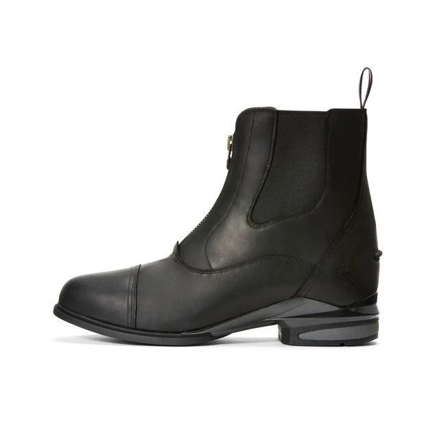 The Devon Nitro men’s ankle boot by Ariat combines advanced technology, top performance and a sporty look. The upper of the ankle boot is full grain leather, this is waterproof, so riding in rain or snow is no problem. The special feature of the ankle boot is the revolutionary Shock Shield™ technology and the Nitro™ footbed, which provide maximum shock absorption by distributing the impact of the heel strike. Dual elastic inserts, the YKK® zip, a padded cuff and the tongue at the edge ensure an optimal fit and thus a comfortable fit. A lightweight Nitro™ frame provides torsional stability in the heel and midfoot area and another great advantage is the Duratread™ outsole with equestrian-proven ground grip zones, so you have a firm footing in the stirrup. The ankle boot is also equipped with a leather lining, so you have a warm foot even on cold days.