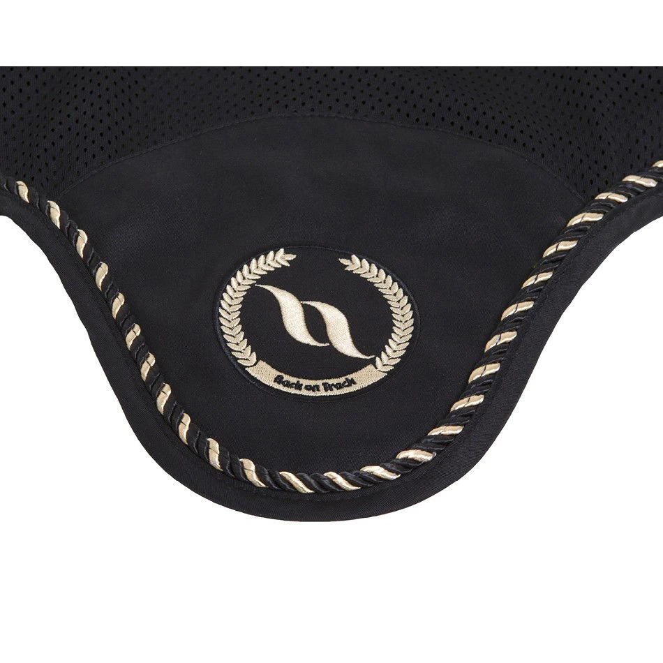 The fly cap “Taye” from Back on Track is a beautiful and at the same time functionally strong fly cap. It is made of black Welltex net material, which reflects the body heat of the horse in the form of infrared radiation. As a result, muscle tensions can be reduced, blood circulation is stimulated and muscles regenerate faster. The black / golden cord and the logo in the front area make the fly bonnet an elegant eye-catcher and a real must have for your riding equipment!