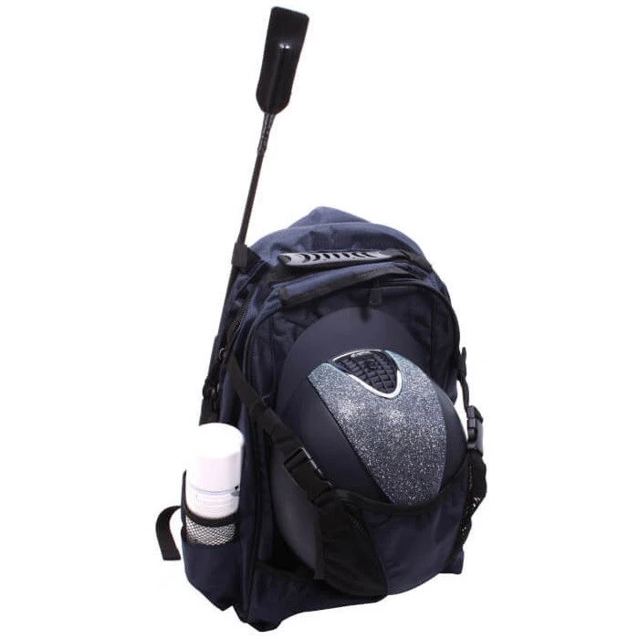 The backpack by One Equestrian is the ideal companion to store necessary things. For the helmet there is an extra shelf in the outer area. In addition, there is an extra compartment on the side, for example, to have a drink handy. Also the crop finds its place on the backpack. Inside, papers, brushes and other necessary items find their place. The backpack is ideal for the tournament or on the road. He is made of high quality and kept simple in appearance.