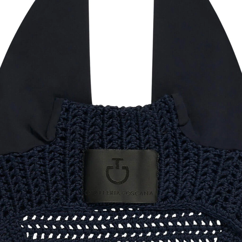 The Crochet Cotton fly bonnet by Cavalleria Toscana captivates with its simple elegance. It is crocheted from high quality cotton yarn. The egyptian cotton makes it breathable, easy to wash and quick drying at the same time. Due to the stretchy properties, the fly bonnet ideally adapts to the horse’s head and provide maximum comfort. The eye-catcher is the embroidered logo on the front and the brand label on the back. The Crochet Cotton fly bonnet is the ideal choice to protect the horse’s ears from wind and annoying flies.