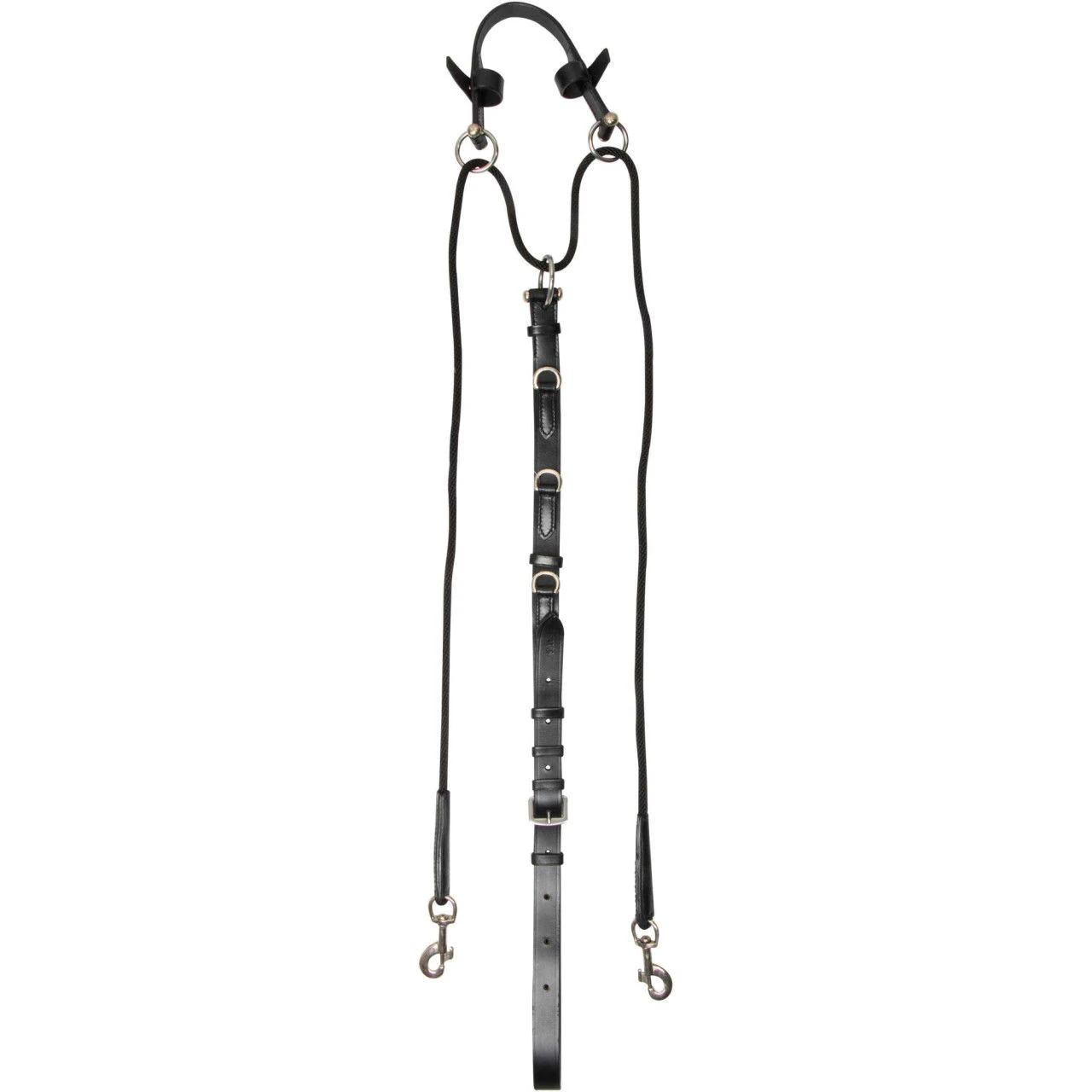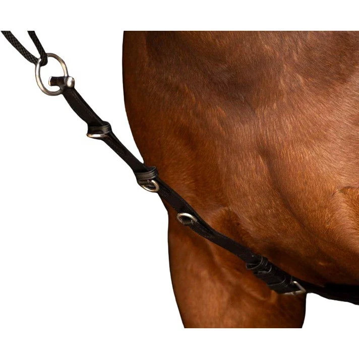 - multi-adjustable breast girth with D-rings, for attachment to the lungeing girth