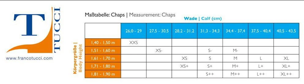 The elegant Harley Chaps by Tucci offer the leg an exceptionally high degree of freedom of movement. These chaps match the Harl ankle boot. The chaps can be easily attached with a new push-button system, which is attached to the Harl ankle boot. The optimal fit is rounded off by padded details. The modern chaps are also equipped with an elastic insert along the zipper, which further increases the wearing comfort. The zipper is extremely resistant and guarantees a secure closure system during riding as well as on the ground. Due to the high quality of the materials used, the chaps are very durable. The Italian full grain leather gives the chaps an elegant look.