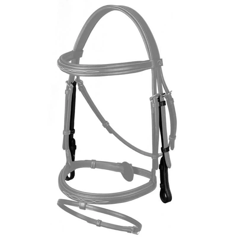 The Cheekpieces HC by Dyon are from the Hunter Collection, which is particularly functional. They are made of high quality Dyon leather, which feels soft on the skin and prevents the formation of pressure points and friction. This ensures a high level of wearing comfort. The stainless steel buckles ensure quick and easy attachment of the cheek pieces to the headpiece and a secure hold without slipping. The cheek pieces are given a noble design by color-matched seams, which make them a real eye-catcher both in the stable at home and at tournaments.