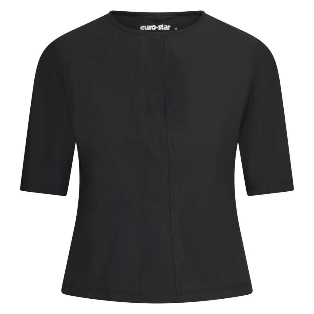 The Competition Mesh Shirt ESFlying Flexible by Euro Star is a show shirt, which is made of breathable, synthetic materials. The competition shirt is inspired by the cut of the FlyingFearless top from the Dani G collection, but has a slightly looser cut. Especially the topic flexibility and wearing comfort are of primary importance for this competition shirt. Due to the slightly loose cut, the shirt can also be worn over another figure-hugging top without restricting the rider’s movement. To avoid excessive sweating while doing sports, the shirt has a light, breathable fabric insert in the areas sensitive to sweating and is therefore well suited for wearing on warm summer days.