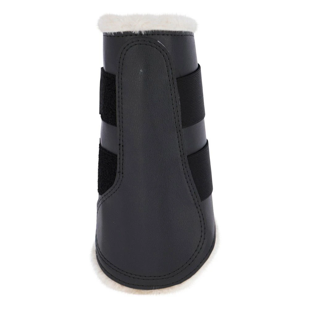 Covalliero’s fleece tendon boots for the hind legs offer optimal protection for joints and tendons thanks to their cozy teddy fleece. The outer layer of durable synthetic leather and thus withstands any weather conditions and any load. The dressage boots have wide Velcro closures for an extra secure hold and are adjustable in size.