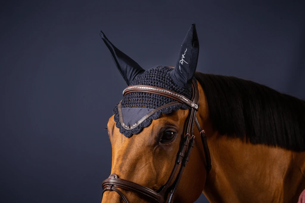 The Dyon HLA Classic fly bonnet has many functional properties. The headpiece is made of crochet yarn, while the ears are made of an elastic material that fits tightly around the ears and protects the horse from flies and other annoying insects. The material is also particularly quick-drying, so that no unpleasant moisture can form. The fly bonnet also impresses visually with its printed Dyon logo on the ear and the decorative border made of a leather strap.
