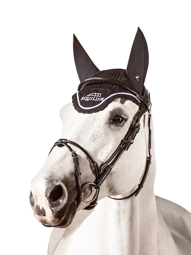 The “Outline” fly cap from Equiline is a real all-rounder. Besides a beautiful appearance it convinces by many functions. The fly bonnet protects the horse optimally against flies and other insects and helps it to stay focused and concentrated. A white cord on the edge of the fly cover and the Equiline logo on the front give it a noble appearance, making it perfect for training and competition.