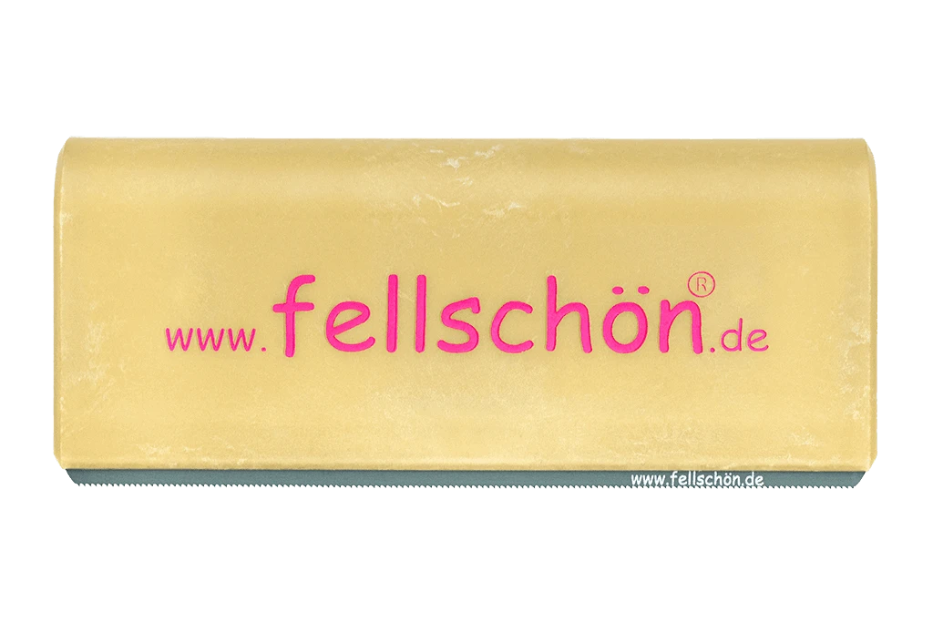 The fur change helper Organic is a special model. The handle is made of wood waste from the German paper industry and refined with high-quality plastic. The Fellschön brushes are a real innovation among horse brushes. The fine metal blade gently removes loose fur and dander, making it ideal as a support during coat changes. The prongs are particularly fine and do not penetrate the skin, so that even sensitive horses benefit from the great properties of the brush. The blade is extra wide, so that even larger areas can be effortlessly depilated. The hair does not get caught in the blade, but falls to the ground, so the brush can be easily cleaned and disinfected. The wedge-shaped handle is comfortable to hold and allows you to work without fatigue. This brush gives the horse’s coat a healthy shine and also smoothes it.