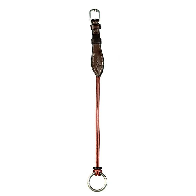 The gag cheekpieces WC by Dyon are part of the Working Collection, which was developed especially for daily use. They are made of sturdy buffalo leather and 4 mm thick nylon ropes. These materials promise a long life. The stainless steel rings are attached with a loop, so the bit can be changed quickly and easily and attaching the cheek pieces is no problem. With the cream-colored stitching, they also look particularly classy. The cheek pieces are supplied in pairs.