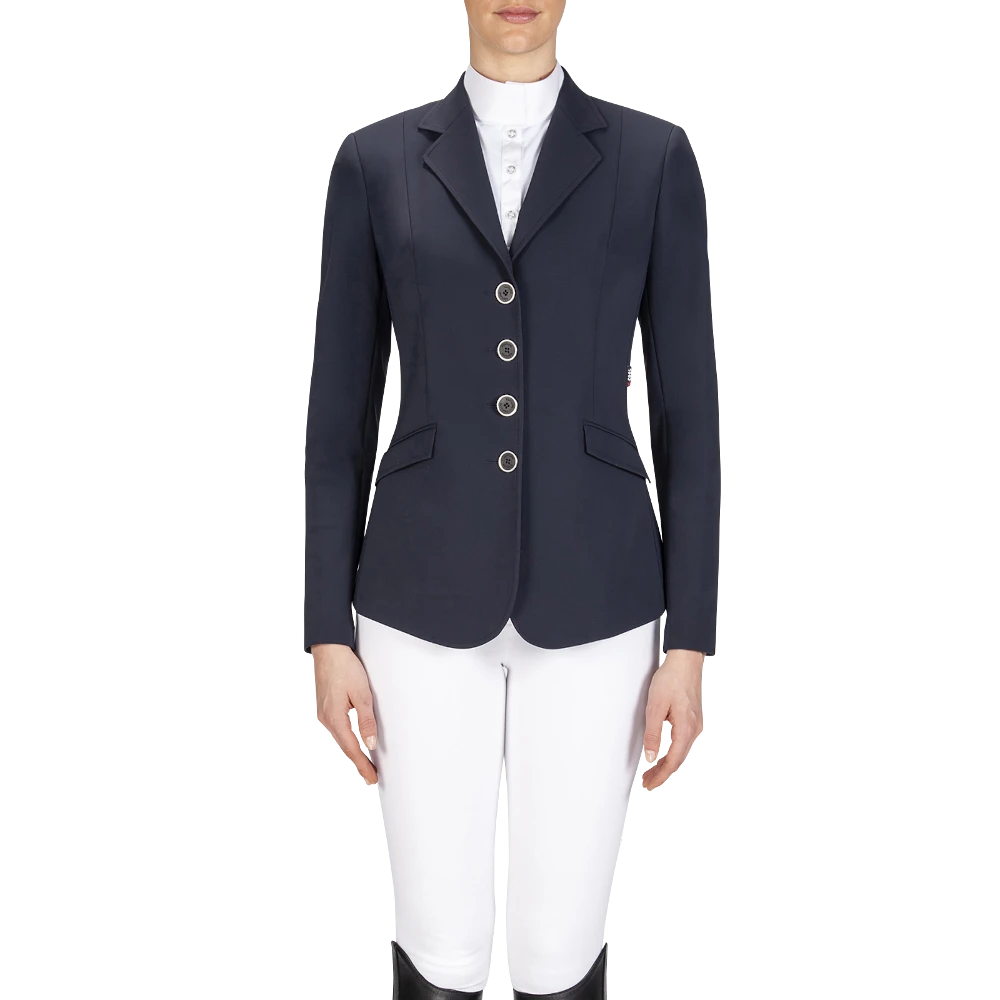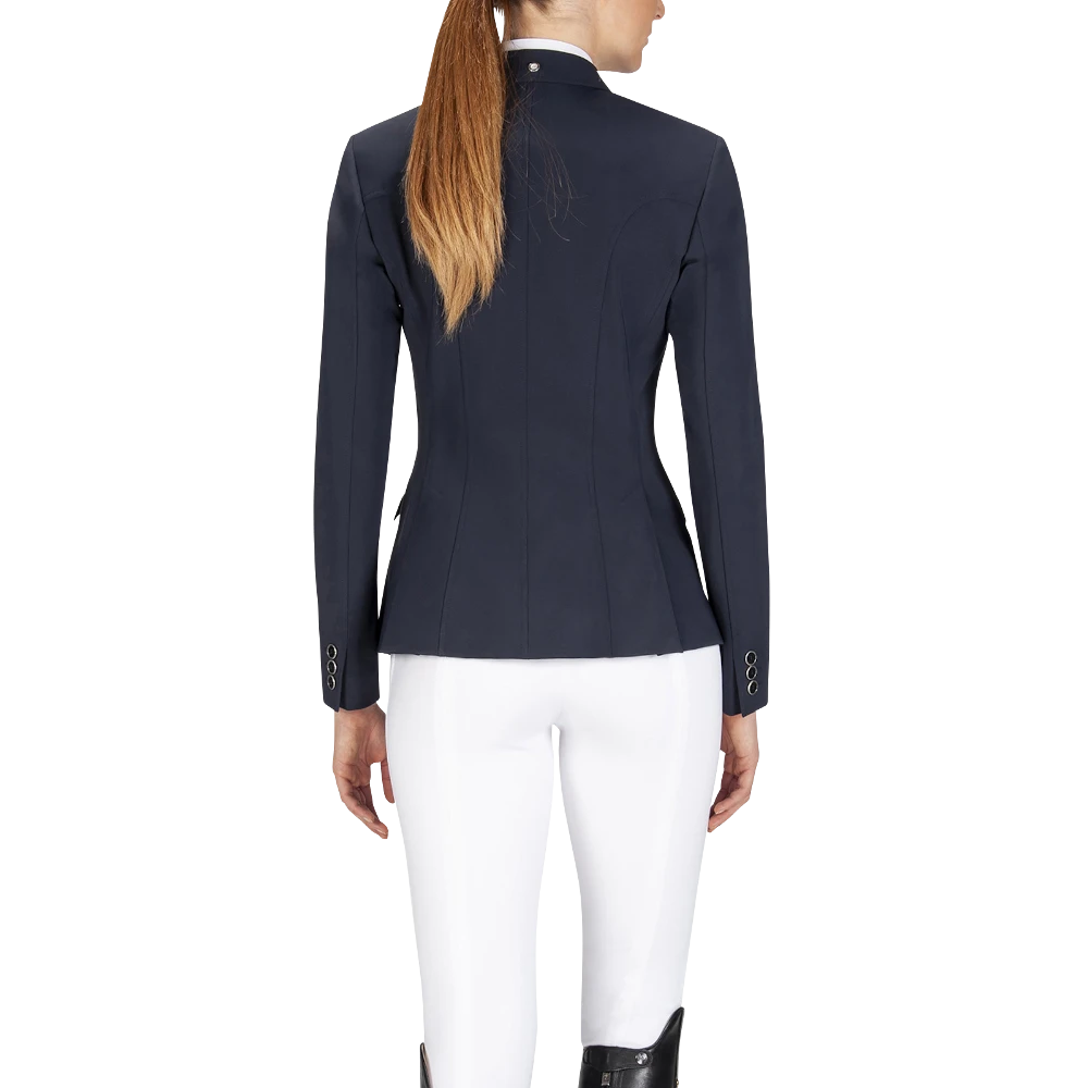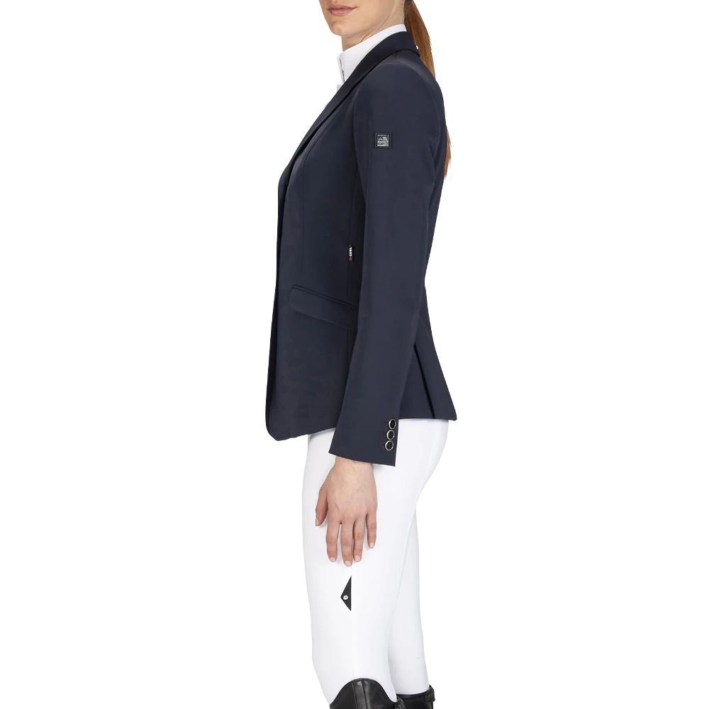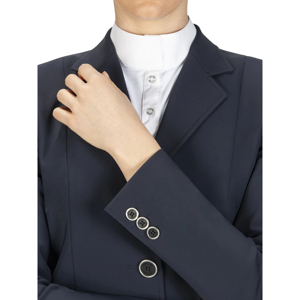 A beautiful Equiline sports jacket. The women’s jacket consists of the innovative x-Cool-Evo fabric, which is breathable, as well as water and dirt repellent. A distinctive Italian elegance paired with new technology. The women’s jacket is also super light, bi-elastic and ergonomically cut. The Easy Care fabric also creates a cooling effect, which is particularly effective in summer. The 4-way stretch guarantees optimal freedom of movement and perfect ergonomics. The button panel at the front offers a comfortable opening and closing of the women’s jacket. The buttons give the women’s jacket a rounded, elegant overall look.