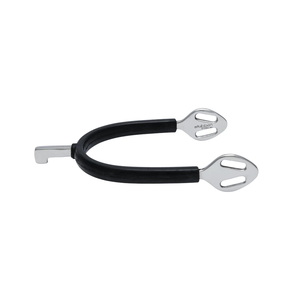 The Fine Line spurs by Stübben Steeltec are made of break-resistant stainless steel and are therefore particularly robust and durable. Spurs with a hammer neck are ideal for horses that need clear signals and equestrians who want to reinforce their thigh aids and give specific, fine signals that would be difficult to do with the thighs alone. The spurs are equipped with a rubber cover that protects the riding boot from scratches and wear and also looks great. Despite the sturdy material, the spurs can be easily bent and ideally adjusted to the equestrians leg. The beam strap loop allows spur straps to be attached for added support and comfort.