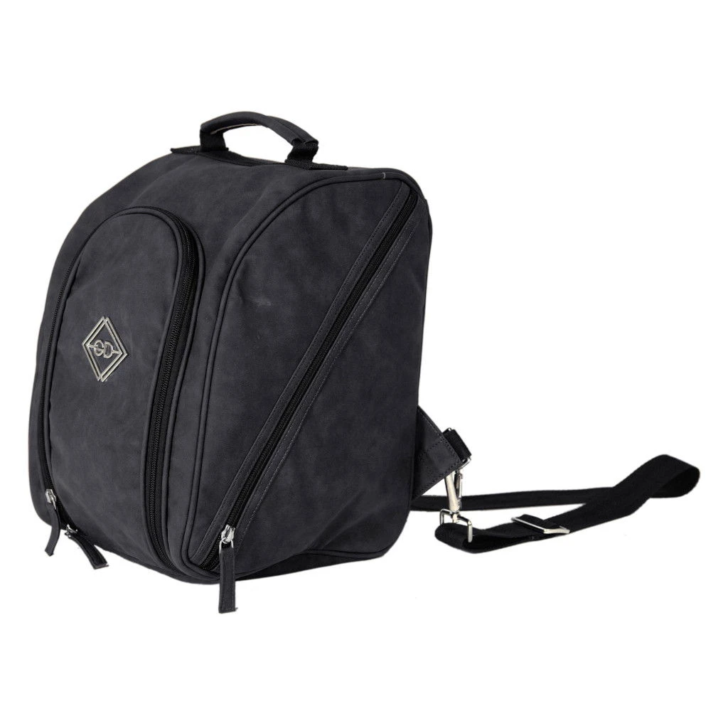 The Chestnut helmet bag from Grooming Deluxe made of synthetic leather with suede look is suitable for storing and transporting the riding helmet. The synthetic rabbit fur inside the helmet bag as well as the additional reinforcement on the back of the bag protect the helmet from external influences and have additional shock absorbing properties. The helmet bag is equipped with a large helmet pocket and two smaller pockets, which is why it offers enough storage space for additional accessories. Each individual pocket is easily accessible with the help of a zipper. For comfortable transport of the bag, it is equipped with a removable and adjustable carrying strap and a reinforced carrying handle. There is a name holder on the reinforced back of the bag.