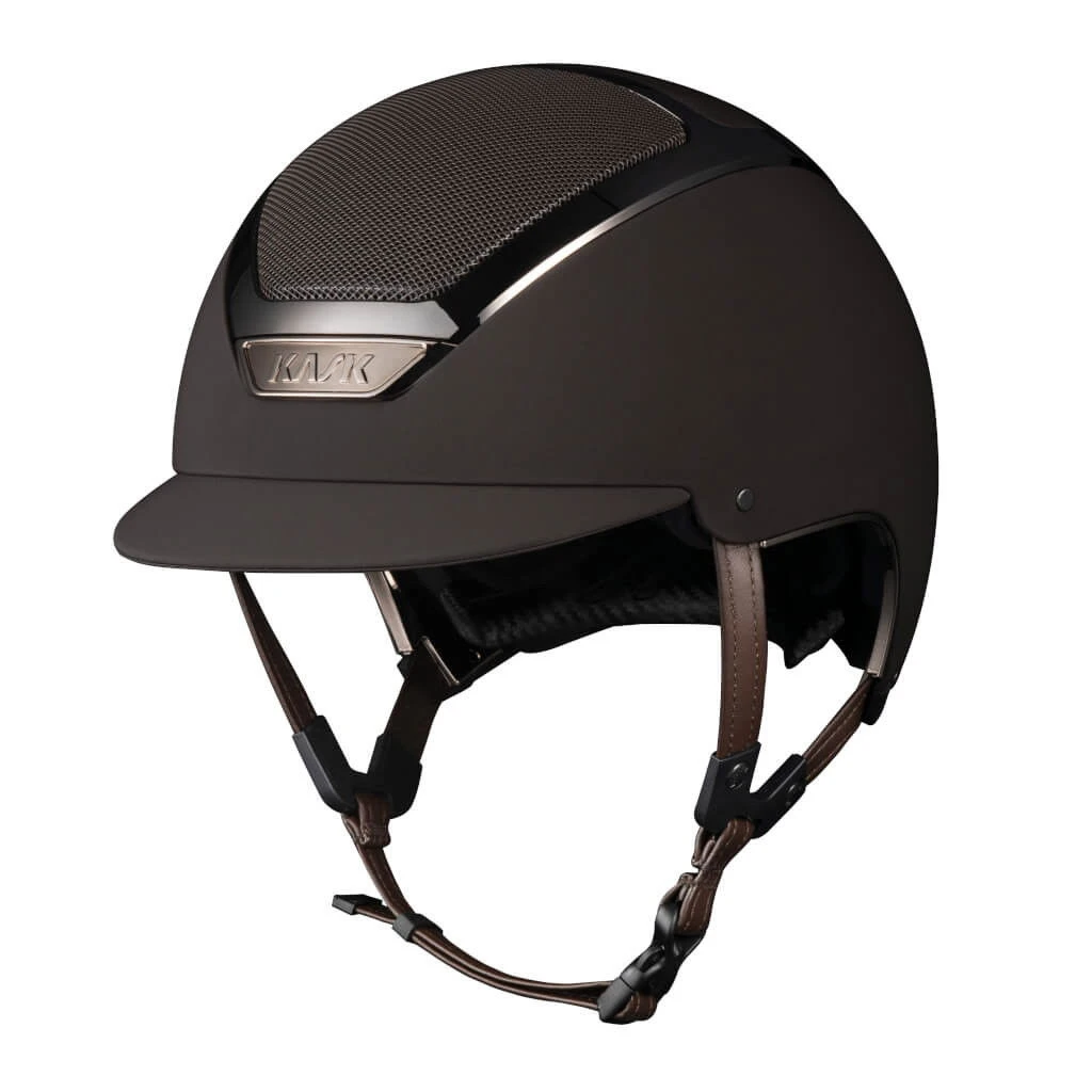 The riding helmet Dogma Chrome Tone-on-Tone Frame by Kask combines lightness and innovative technology. The patented FIT system in carbon optics enables the highest wearing comfort and safety, as it automatically adjusts to the head. The outer shell is made of resistant ABS which is covered with a special, waterproof and scratch-resistant textile material. The inner shell is made of foam polystyrene with three different density levels so that impacts are absorbed. The chin strap made of soft eco-leather is hypoallergenic and prevents skin irritation. The strap is closed by a click closure and can be adjusted in size. The soft inner lining is made of 100 % breathable merino wool, which also regulates temperature. The existing ventilation system is based on two honeycomb-like ventilation grids, which effectively prevent perspiration. The inlay of the riding helmet is completely removable so that it can be washed in the washing machine. Visually, the helmet impresses with its simple elegance and the tone-in-tone frame. The riding helmet complies with the safety standards CE VG1 01.040 2014-12, ASTM F1163-15 and WG11.