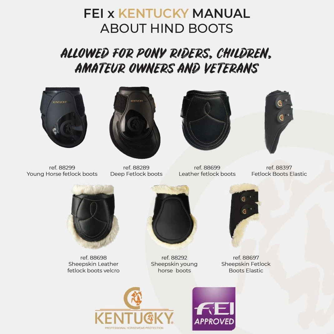 The Kentucky Horsewear fetlock boot is made from the latest technical materials with a focus on protection, comfort and freedom of movement. The robust outer shell is made of super light but extremely stable TPU and protects against bumps. In addition, the fetlock in the bondage area has the D3O shock-absorbing molecules to guarantee a high level of safety. Furthermore, the fetlock boot has effective ventilation openings to prevent the legs and tendons from overheating. Thanks to the perforated neoprene lining, the fetlock boot is incredibly breathable and has excellent cushioning. The fetlock boot is cut higher than conventional fetlock boots to allow absolute freedom of movement when jumping in the bondage area.