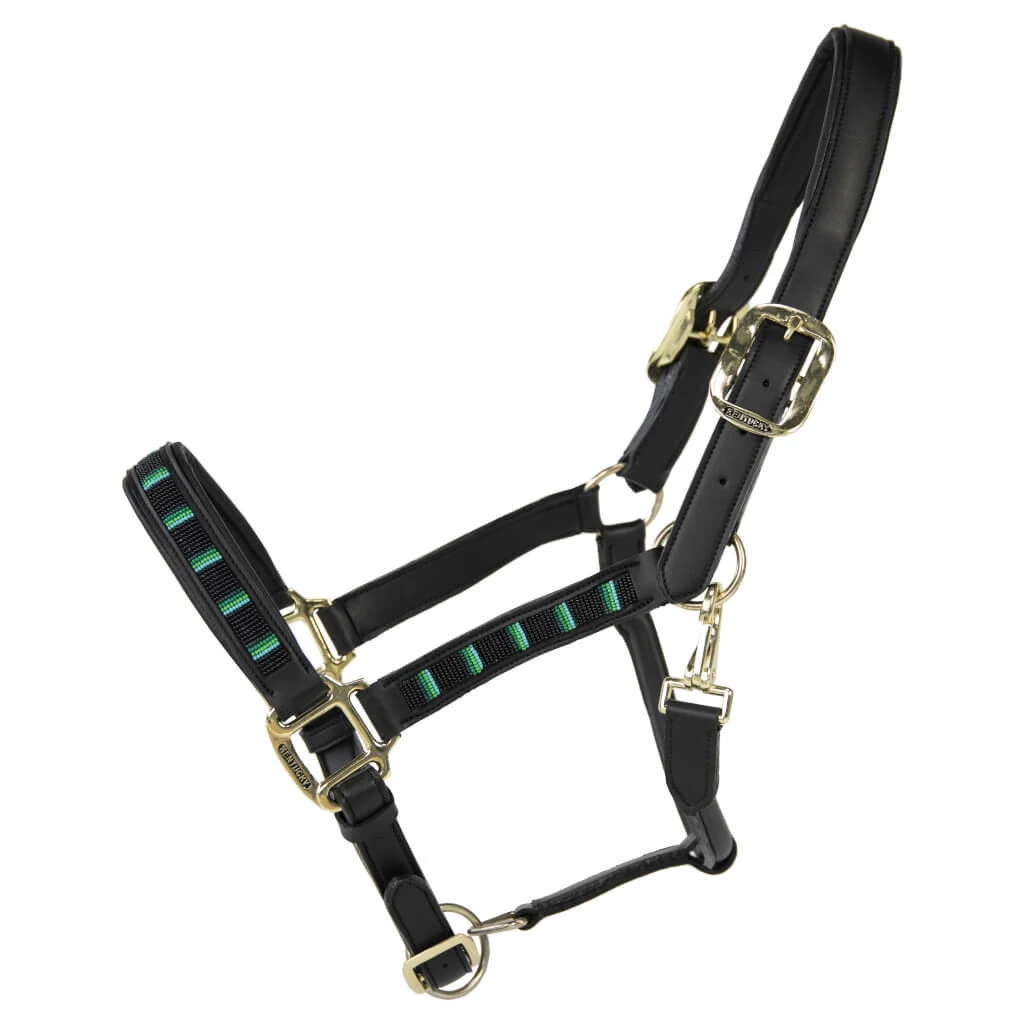 The halter Pearls by Kentucky Horsewear is made of artificial leather and is therefore particularly animal-friendly manufactured and durable. In combination with the pearl detailing and the brass-colored fittings, the halter captivates with its extraordinary look. The imitation leather is very easy to care for and can be cleaned with a damp cloth. The imitation leather also behaves very inconspicuously in relation to sunlight and water, as it does not discolor or harden. The model is adjustable in 3 parts and can thus be individually adapted to the horse’s head, guaranteeing a good fit.