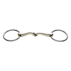 This underlay bridle impresses with its special curvature of the mouthpiece. Due to this special shape, the bit lies completely on the entire tongue and thus distributes the pressure over the entire jaw area. Given rein aids arrive very directly and also effectively in the mouth, which is why this bit is particularly suitable for horses that do not constantly approach the hand or also for horses that no longer react appropriately to the softer signals of a double broken bit. Horses or ponies that have less space in the mouth also benefit from this bit, as this underlay bridle can also be used as a normal single broken bridle. Please buckle all bits marked with an arrow so that the arrow on the left hand points forward.