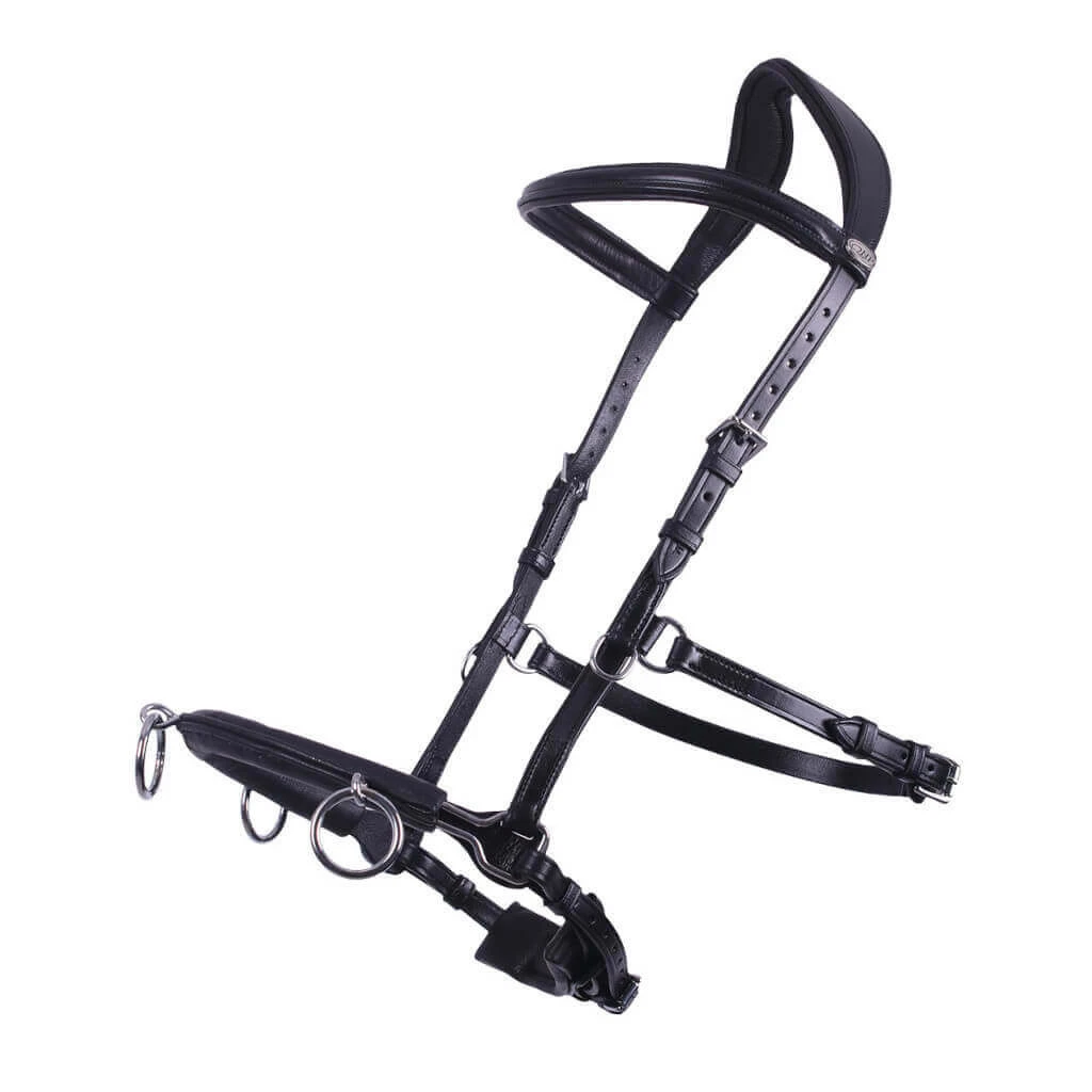 - three rings are attached to the nose strap to which a lunging line can be attached