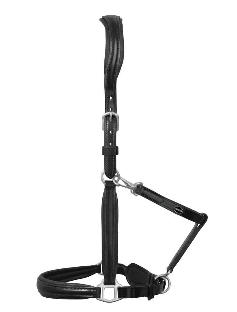 The leather halter by Passier is the ideal companion in everyday life and for special occasions. Its elegant design completes any outfit. The anatomical shape provides special wearing comfort and relieves sensitive regions on the horse’s head. The halter is lined with additional leather at the nose and the nape of the neck, which prevents chafing. On both sides, the head straps can be adjusted using thorn buckles to achieve the best possible fit. Particularly special about this halter are the removable throatlatch and chinstrap. The decorative stitching on the halter is color cordinated and emphasizes the noble design. The thinly held halter straps give this halter an elegant look.