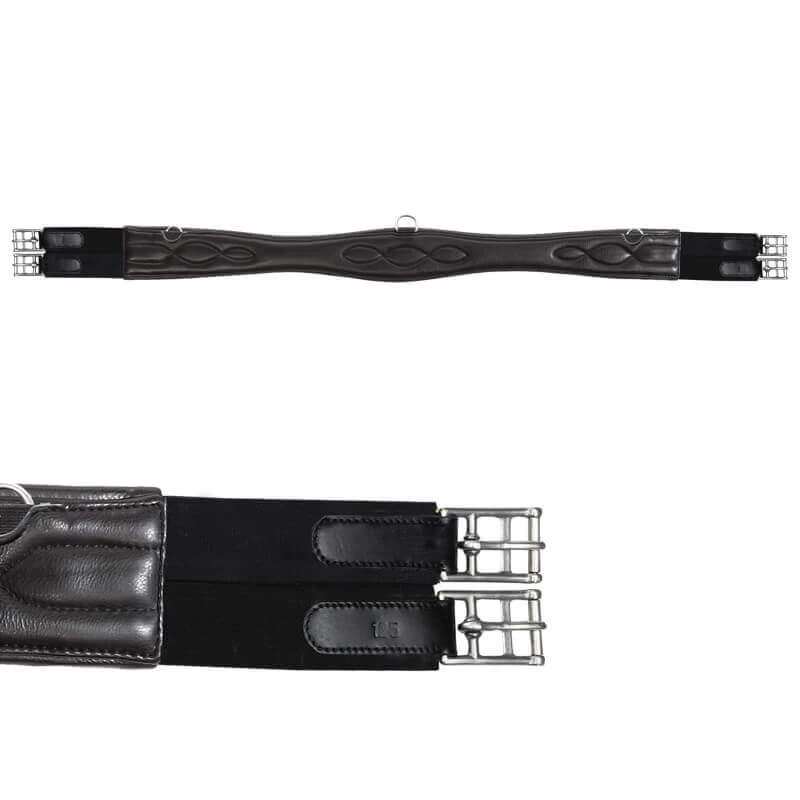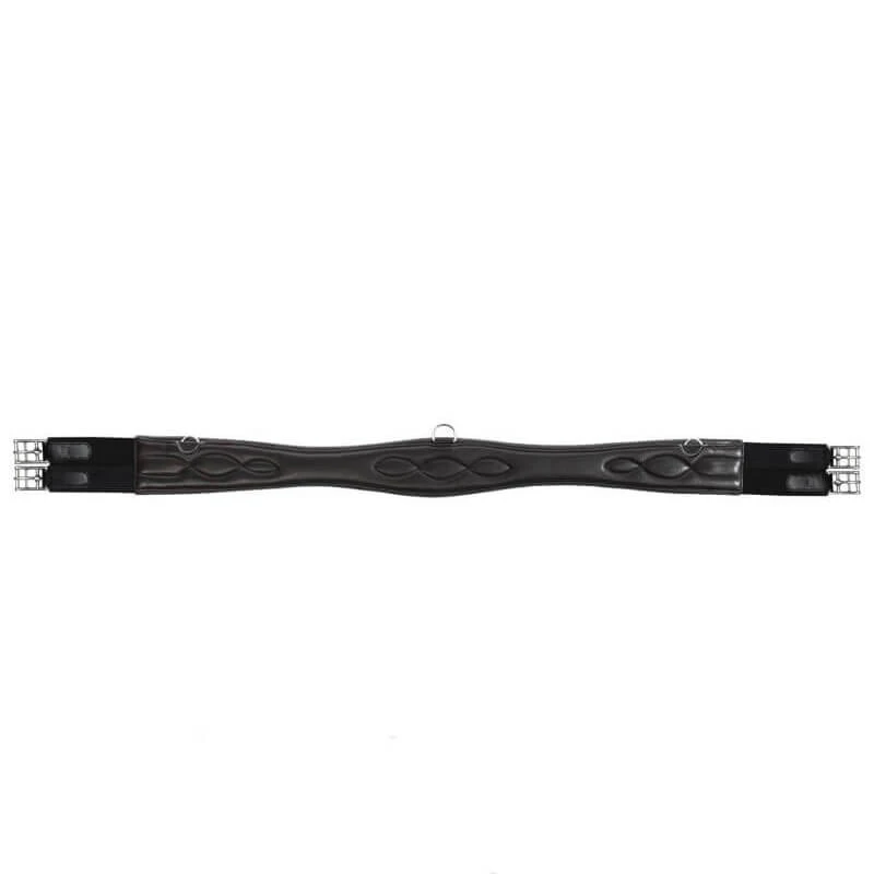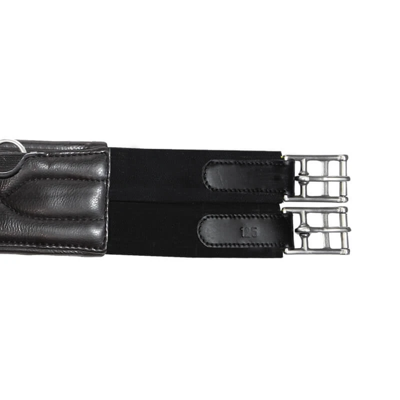 The soft saddle girth by Kavalkade is pleasant to the skin and allows the horse sufficient freedom of movement. The girth is constructed with a strong and stable nylon strap, which gives the girth dimensional stability. Around the nylon strap is soft foam, which provides good pressure equalization. Last is the soft leather, which is pulled around the girth and lies like a second skin on the horse’s stomach. The decorative stitching makes the girth a real eye-catcher and gives it a very classy look. The 3-way elastic zones help to achieve an optimal fit, which means that the horse can wear the girth for a longer period of time without any problems. At the stainless steel roller buckles, which are rustproof, the girth can be connected to the saddle, so that it has a secure and firm fit and does not slip even when riding fast. The 3 D-rings are used to attach auxiliary reins or breastplates.
