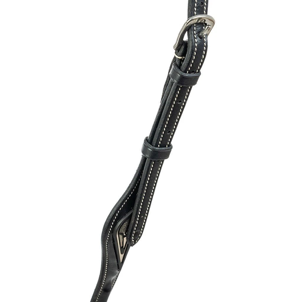 This traditional Equiline martingale is the perfect solution when your horse’s head is raised above the set height and is not accessible to the rider’s aids or could injure you. The martingale is made of high quality leather that is soft and comfortable for the horse to wear. The buckles made of steel look beautiful and give the martingale a noble appearance on the one hand and on the other hand they are very practical to attach reins or similar quickly and easily. A beautiful martingale with a great price, which keeps its promises and should not be missing in your riding equipment!