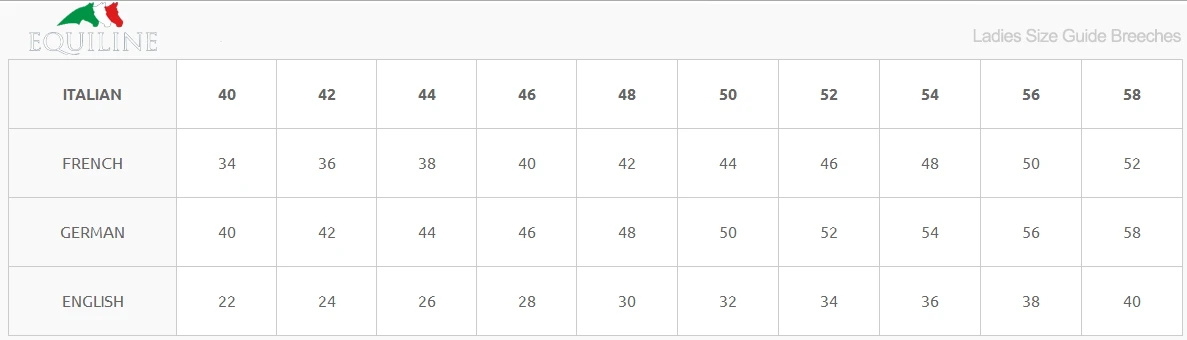 The breeches X-Grip Willow by Equiline are made of proven microfibre and have an ergonomic cut. As a result, these breeches offer an optimal fit and great wearing comfort. In addition, the breeches are equipped with an innovative high-quality grip in the knee area, which offers optimal hold and safety in the saddle. Thanks to the elastic leg cuffs with stretch-fastening system, the breeches are close-fitting at the legs. This prevents pressure points or chafing in the riding boots. In addition, the breeches have the waist block system which ensures an optimal fit at the hips and thus prevents the competition shirt from slipping. The jodhpurs are visually impressive due to the two slit pockets on the front and the zipped pocket on the back on the right. The silver Equiline logo above the right pocket completes the look.
