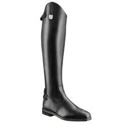 Tucci riding boots Sofia All Tucci boots are made with the highest quality materials and fine Italian leather. The leather is tanned using the most innovative techniques to create a material that combines genuine leather, water resistance, antibacterial materials and a 30% lighter product in the same shoe and is ecological, which guarantees more resistance and stability. The Sofia riding boot is a particularly elegant leather boot and is ideal for tournaments and training. The high dressage bow and the elegant Spanish details on the toe cap complete the look perfectly. The inner material is made of soft and fine calf leather and guarantees optimal comfort. The riding boot has a strong zipper, a zipper protection and side spur holder made of leather. The padded leather tongue on the back protects both the heel and the zipper and helps the foot to slip easily into the shoe of the horse boot. There is an elastic back strap along the zipper and offers optimal freedom of movement and flexibility when worn. It is also breathable and absorbent. The antibacterial shock absorber sole inside absorbs unpleasant smells. The non-slip rubber sole on the outside guarantees you the best grip in the stirrup. The leather and the elastic insert give in after about 1-2 weeks, so that they expand to the perfect width and they feel like a second skin. When buying, you should make sure that the riding boots are very tight. This ideal fit is particularly suitable for show jumpers, where the riding boots must not slip under any circumstances when jumping. Of course, these are also suitable for dressage, which means that the rider can have a finer effect on the horse.