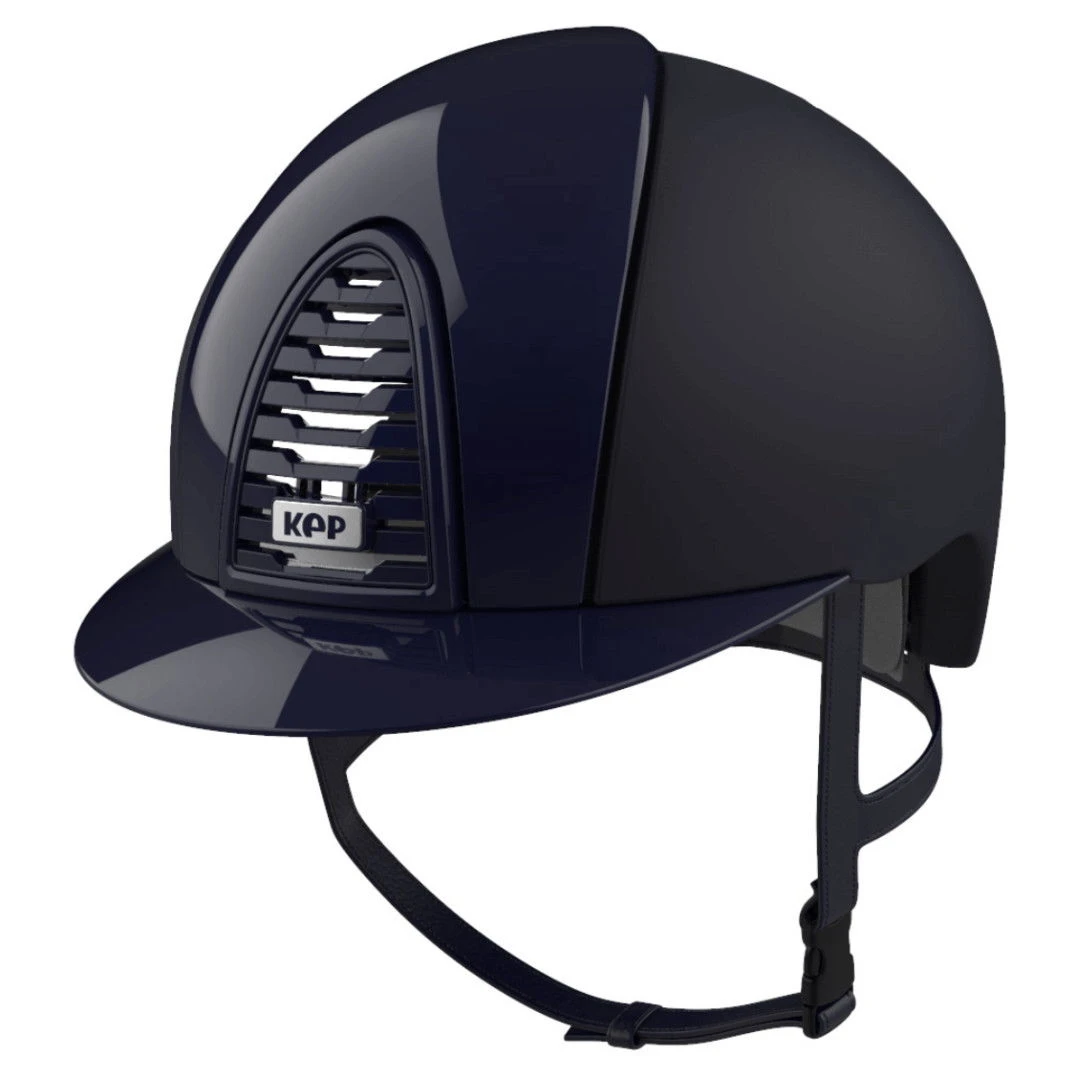 The riding helmet Cromo 2.0 Polish by KEP is the further development of the KEP riding helmet model Cromo. The surface of the visor and the panels on the front and back of the helmet have a shiny coating and therefore look very classy. Thanks to the innovative plug-in system of the Cromo 2.0, it is possible to replace the panels and the visor. In this way, the riding helmet can be adapted to one’s own needs both visually and functionally in just a few steps. Underneath the front panel is a chip with integrated NFC technology, which further improves safety. In combination with the KEP app, health-related data can be saved so that important data can be accessed easily in an emergency and first aid can be provided if necessary. The Cromo 2.0 is characterized by its optimized ventilation system and guarantees sufficient air circulation, which can be individually adjusted. The adjustable chin strap is made of leather and and sewn by hand. It promises a comfortable and secure fit of the Cromo 2.0 due to the 5-point system. The helmet is certified according to the safety standards VG1 01.040 2014-12 and ASTM F1163-15.