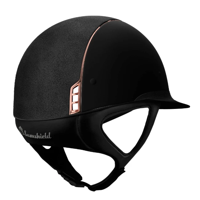 Samshield Riding Helmet Miss Shield CSM Alcantara Top, Alcantara Frontal Band, Rose Gold, black, blue