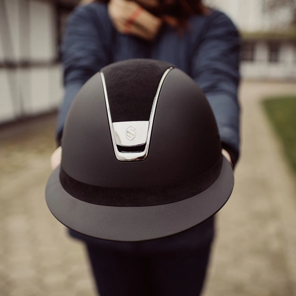 Samshield Riding Helmet Miss Shield Shadow Matt Top + Frontal Band Alcantara Trim + Blazon Black Chrome