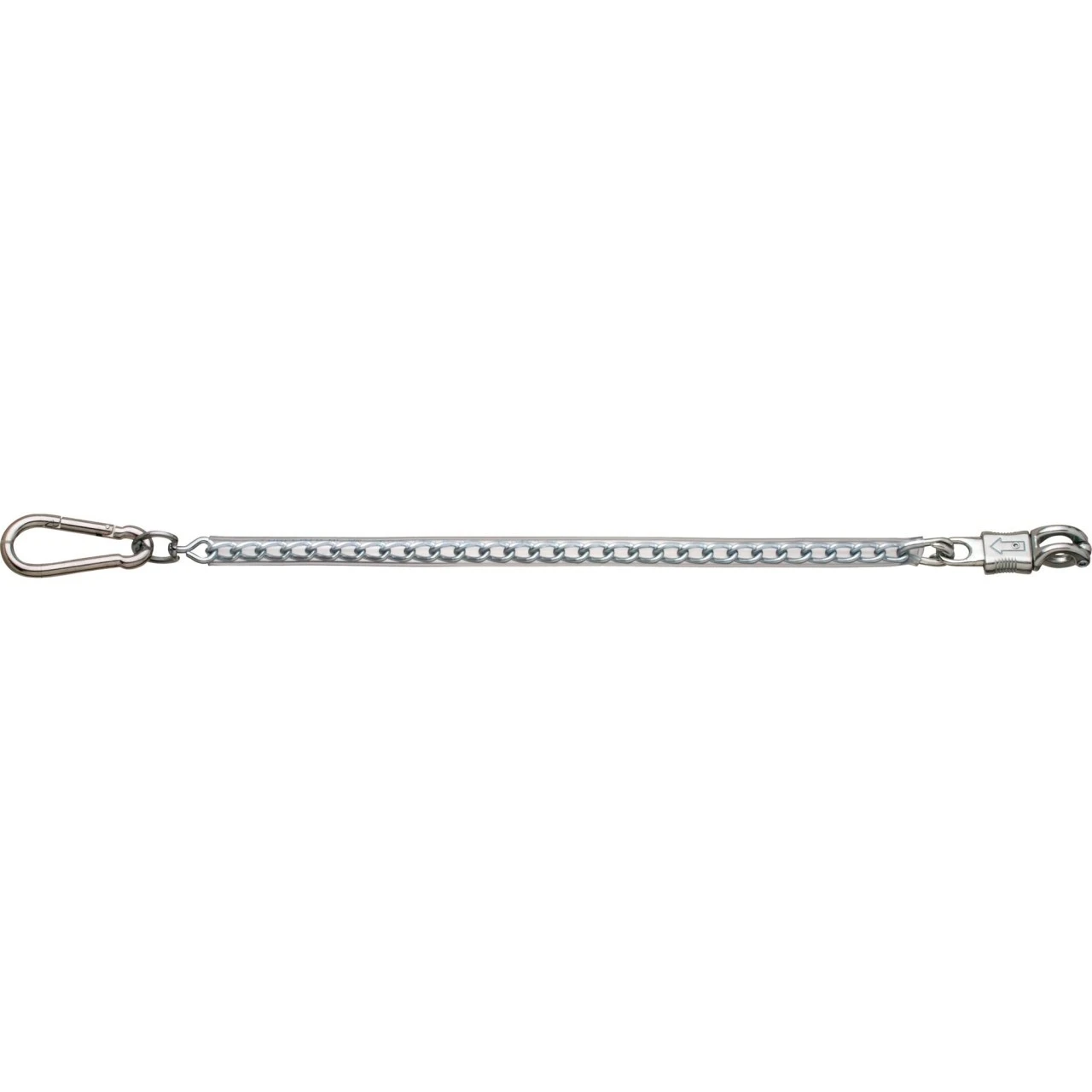The safety chain 46055 by HS Sprenger is made of glvanized steel and coated with plastic. The safety chain has a carabiner on one side for fastening. To tether up the horse she has a panic hook on the other side. The safety chain is available in lengths of 70 cm and 140 cm.