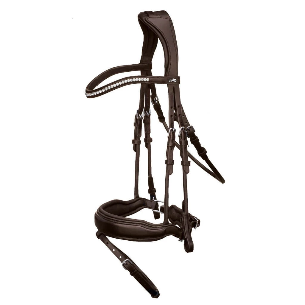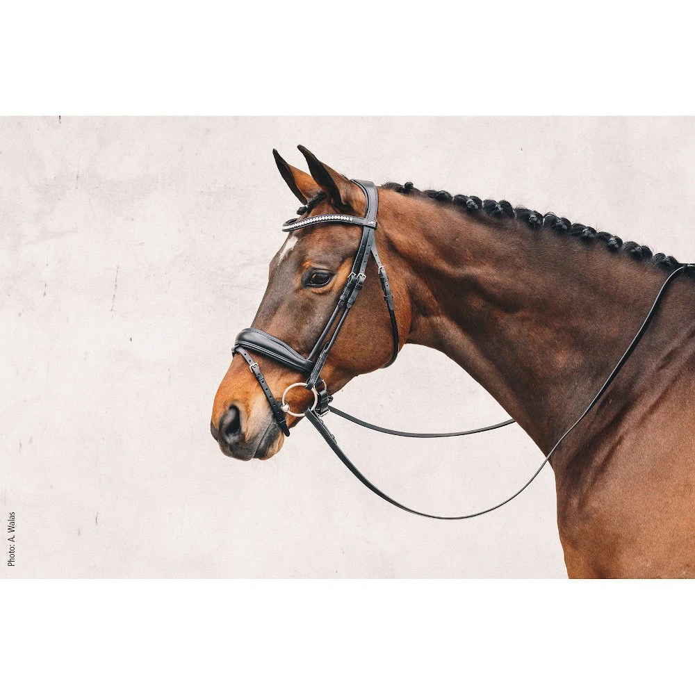 This luxurious snaffle line Anatomic by Schockemöhle has developed the special Malibu Snaffle with Swedish Caveson Special. This has an anatomical fit and is made of high-quality leather, which is especially thick and softly lined. The specially developed head piece minimizes the pressure on the neck and neck muscles and at the same time offers the horse’s ears sufficient freedom of movement. A further comfort is provided by the wide, anatomically shaped noseband, which nestles optimally around the horse’s head due to its curved shape. In addition, it has a cut-out in the area of the zygomatic bone and the snaffle ring, which prevents a clamping effect. Equipped with a deflection buckle and an anatomically shaped, soft chin pad, the Malibu Snaffle offers maximum wearing comfort. The throat strap adjustable on both sides and the cheek pieces with bridle hooks are particularly practical – this model can be quickly and individually adjusted in size.