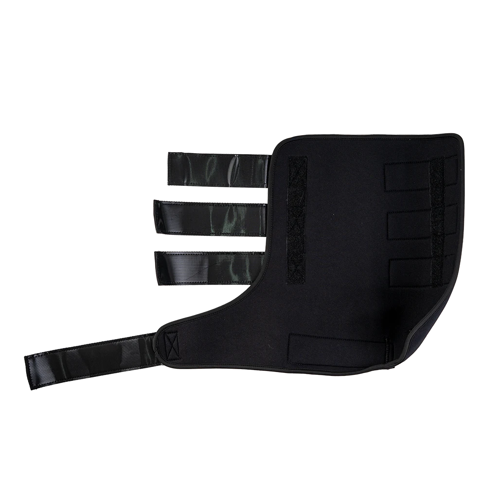 The Fenwick Liquid Titanium stable boots are a therapeutic model. They consist of a moulded neoprene cover and a removable Liquid Titanium pad. The cushion is attached to the inside of the stable boots with two Velcro strips. This means that the cushion can also be attached to the horse’s leg, for example with bandages, without the neoprene cover. The cover is closed with several strong Velcro fasteners and is therefore particularly easy to attach to the horse’s leg. The Liquid Titanium Cushion works by means of far-infrared therapy, which produces an internal heat. This stimulates the blood circulation, increases the metabolism, but can also relieve pain and swelling. The stable boots should not be worn in the pasture or overnight in the box. The gaiters are recommended during the ride to the show, between tests or before training at home. They are supplied in pairs and can be used for both front and hind legs.