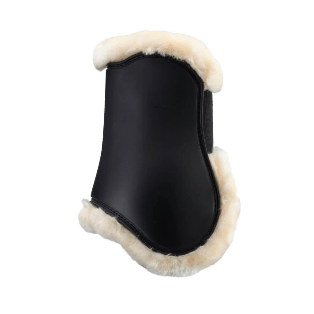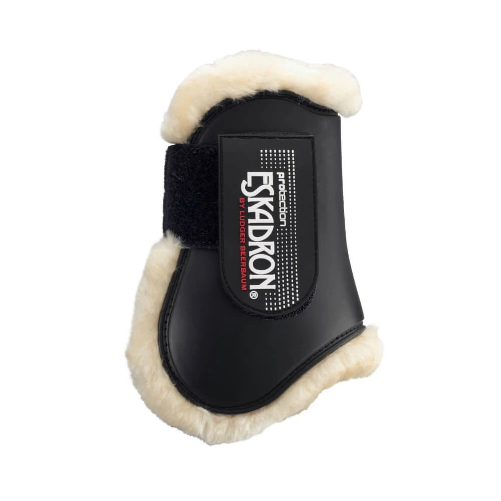 The Faux Fur Compact boots are open, short boots for the hind legs. They are made of durable and robust TPE, which protects the horse’s leg from bumps and knocks. The practical Eskadron Velcro fastener with elastic band makes it easy to attach and remove the boots. In addition, the boots have a lining made of faux fur synthetic lambskin, which is deceptively real. Compared to real lambskin, this synthetic fur is very easy to care for and washable.