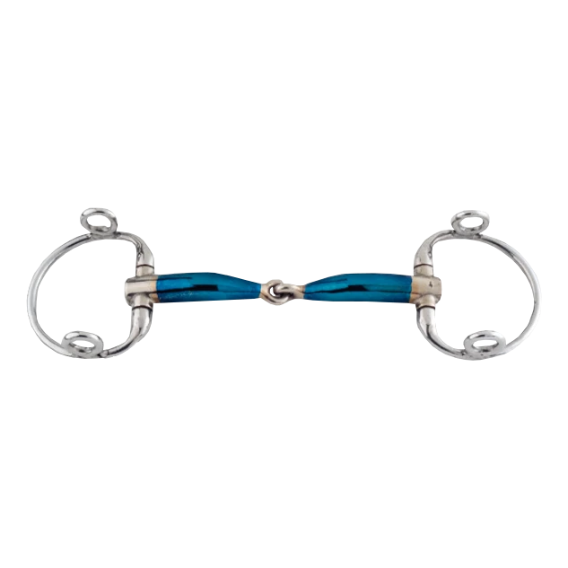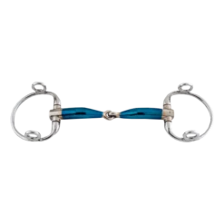 Trust’s “sweet iron” bits have a mouthpiece made of steel, which has a recognizable blue color. When this special alloy comes into contact with moisture, a kind of surface rust is formed, which tastes sweet and thus naturally stimulates saliva production. For this reason Trust bits are accepted and accepted by almost all horses. Due to this rust development (oxidation) the blue color of the TRUST bit changes to gray to brown. The Sweet Iron bit will form a thin orange-brown layer of rust on the mouthpiece when temporarily not in use. This can be easily removed with a damp cloth. The special thing about wind-up bridles are the nylon cords, which are threaded through the side of the bit and on the lower ring of which you can attach another rein. The upper part is buckled into the halter like a cheek piece. This system aims to lift and tilt the bit when the reins are accepted and should therefore only be used with fine aids. Ride-up bridles are especially suitable for horses that are very strong or for very sensitive horses, as the rider gains a maximum of control due to the double bridle guidance. The lateral “olives” of the olive head bit, effectively prevent the lips from being pinched and thus contribute to the wearing comfort. The “locked” function additionally increases the effect on the mouth, since the joint blocks when counter-pressure is applied by the horse and thus acts like a rod.