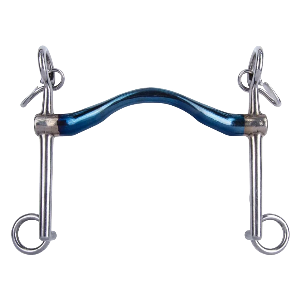 Trust’s “sweet iron” bits have a mouthpiece made of steel, which has a recognizable blue color. When this special alloy comes into contact with moisture, a kind of surface rust is formed, which tastes sweet and thus naturally stimulates saliva production. For this reason Trust bits are accepted and accepted by almost all horses. Due to this rust development (oxidation) the blue color of the TRUST bit changes to gray to brown. The Sweet Iron bit will form a thin orange-brown layer of rust on the mouthpiece when temporarily not in use. This can be easily removed with a damp cloth. The slightly pronounced freedom of the tongue leaves enough space under the bit and distributes the pressure optimally on the chests as well as on the tongue. It is also not so high that there could be enormous palatal pressure, so this bit offers the highest comfort for your horse. The bit comes with long (7cm) suits, which increases the pressure on the neck, but also extends the lever travel and thus allows a “delayed” help. This means that small, unintentionally given aids are not passed on immediately, but only have an effect on the horse’s mouth when the lever is used more heavily. Since the lever then shows its full effect, however, its use requires a fine and experienced rider’s hand.