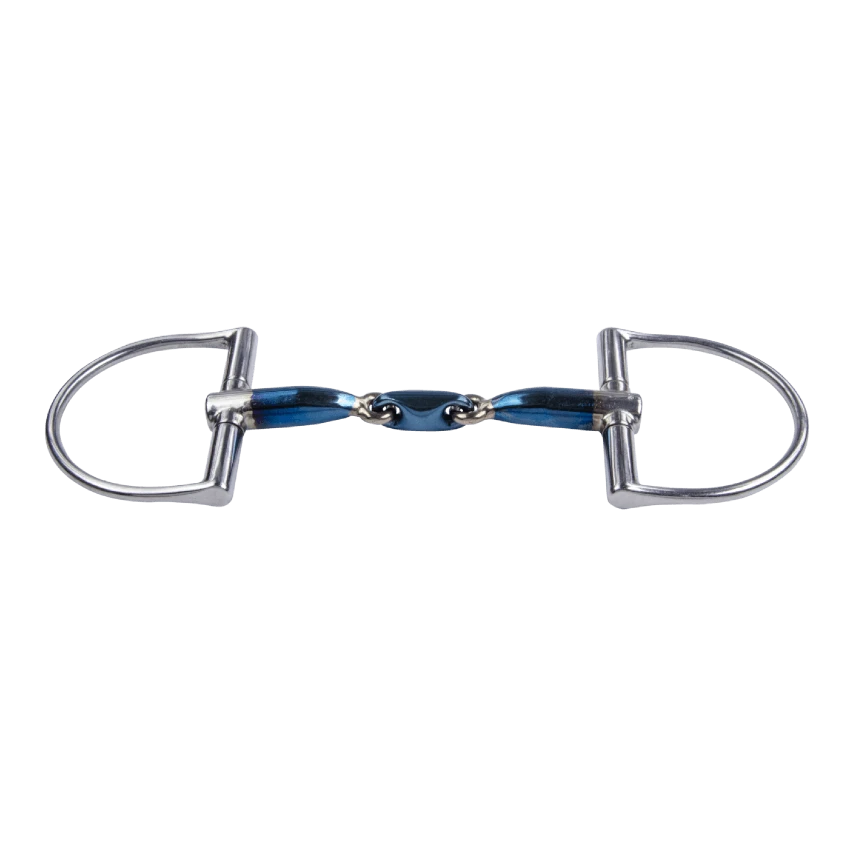 The double broken Sweet Iron D-Ring bit by Trust is ideal for young and sensitive horses. The double-broken mouthpiece lies loosely in the mouth and distributes the pressure on the loads, the tongue and the corners of the mouth. For horses with a narrow lower jaw, it should be noted that the hinge points can press on the loads. The D-shaped side pieces limit the horse laterally and help with bending and stance as they put pressure on the cheeks. The mouthpiece promises high acceptance due to the anatomical shape and the special alloy, which forms sweet-tasting surface rust with moisture.