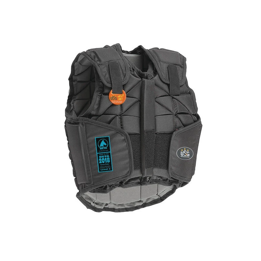 The high-quality outer material is made of a robust, dirt-resistant and easily cleanable polyester. The safety vest is very flexible and therefore promises a high wearing comfort. Especially the honeycomb structure of the vest ensures that the children are not restricted in their movement when wearing and the vest adapts perfectly to the body. Velcro fasteners in the shoulder and front area can be used to quickly and easily adjust the size of the safety vest, so that a good fit of the vest is assured. The Flexi Motion is certified according to the European riding standards EN 13158-2018 Level 3 and BETA Level 3.