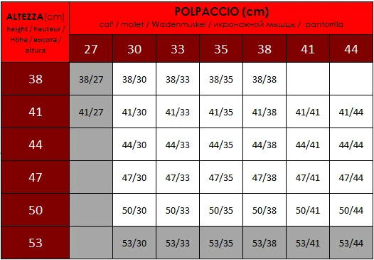 The walk & ride Chap “Flexy” by Sergio Grasso is made of super soft calfskin, elastic leather on the side and padding on the inside. This guarantees a perfect fit on the leg and you have a pleasant wearing comfort. The side zipper in contrasting colour not only makes the Chap a real eye-catcher, but also makes it quick and easy to put on and take off. If you want to find out your size, you should refer to the size chart. Please note, however, that the height in the measurement chart corresponds to the height measured from the floor to the back of the knee (see Riding boots measurement guide). The calf circumference should be measured with breeches and socks! The “Flexy” chaps fit like a glove and enhance your riding outfit in a fashionable way, while you can benefit from the advantages of chaps!
