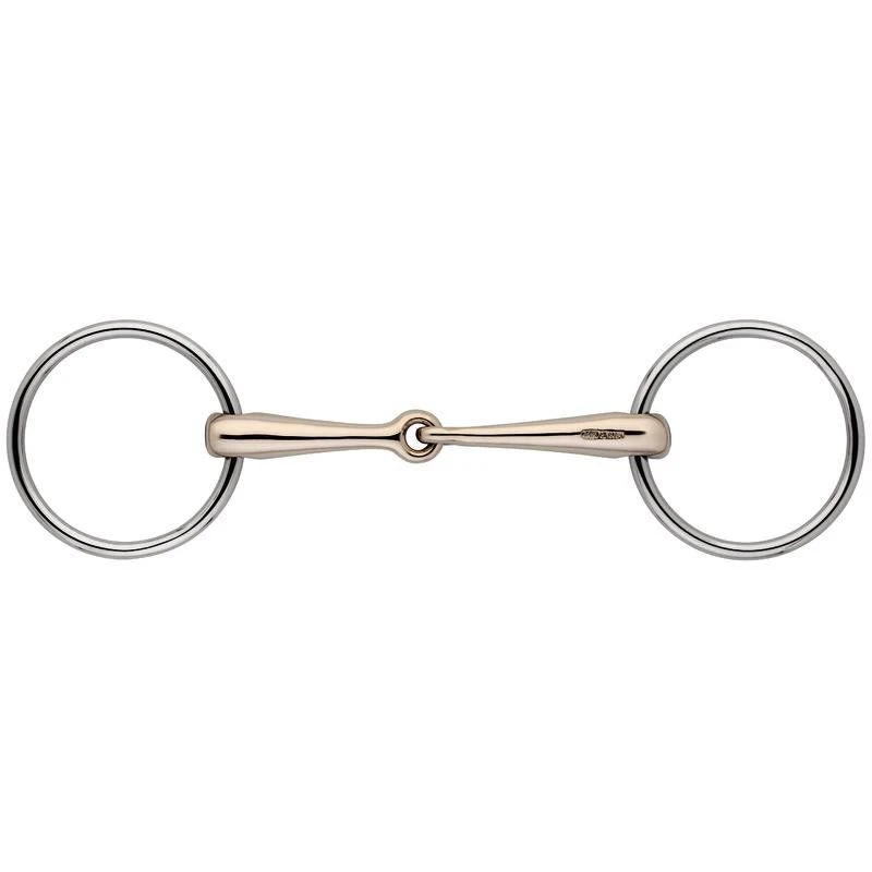 Sprenger’s classic, single-break water snaffle comes with a Sensogan alloy – consisting of copper, manganese and zinc – but the properties of manganese should not be underestimated. Manganese is a very important trace element, which is important for the building of connective tissue as well as for muscle and energy metabolism, whereby possible stress reactions can be reduced. Sensogan dentures shine with a very high tolerance and acceptance, which is why these dentures in combination with their classical form can be used for all age groups, training levels and breeds – a real all-rounder! Please fasten all dentures marked with an arrow so that the arrow on the left hand points forward.