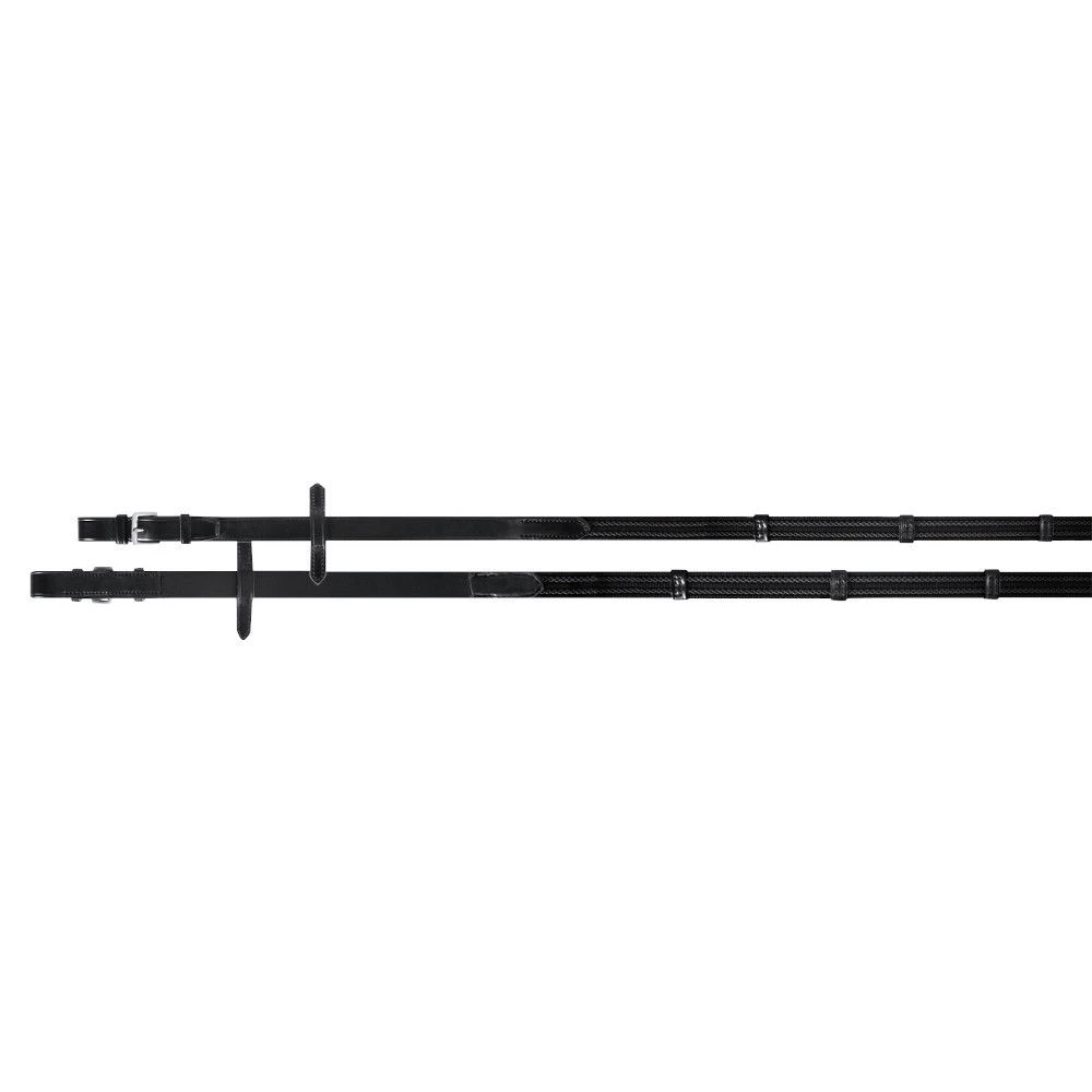 Passier web bridle reins with rubber webbing and leather hand grips with buckles