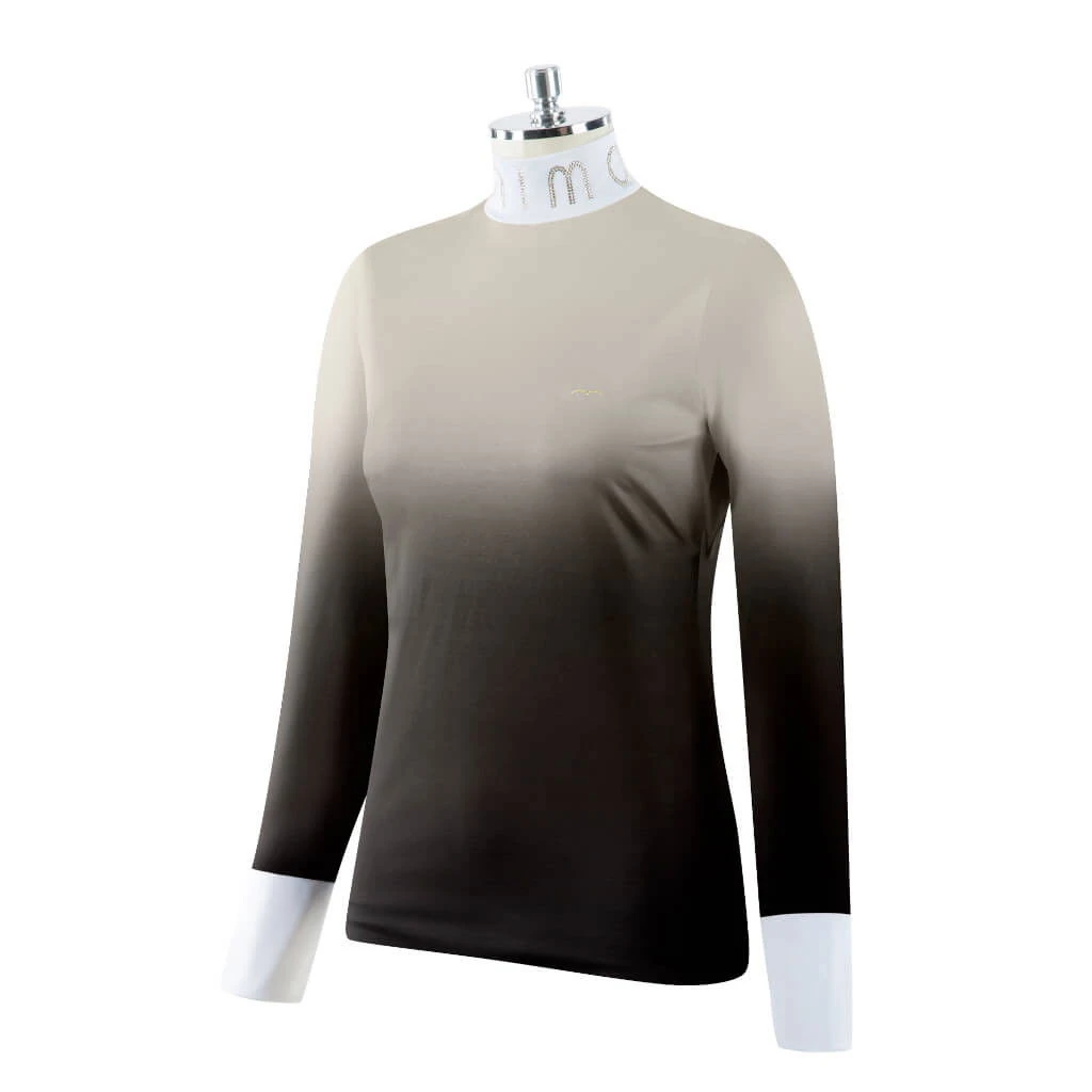 The competition shirt Draco from Animo belongs to the fall/winter collection 2022 and convinces with its special look. The functional jersey fabric is breathable, quick-drying and elastic. The particularly lightweight material gives a pleasant feel and maximum comfort. To avoid chafing by a label, it was printed on the inside. The stylish color gradient makes the competition shirt a real eye-catcher. The Animo rhinestone lettering on the white stand-up collar, the white sleeve cuffs and the Animo rhinestone logo on the left chest are also eye-catching. The competition shirt Draco is a highlight for every competition outfit.