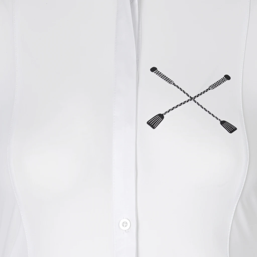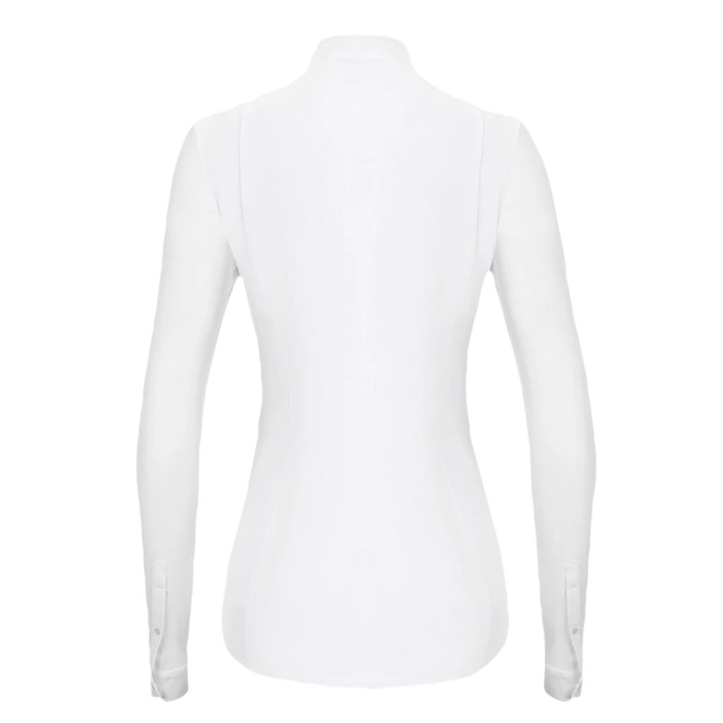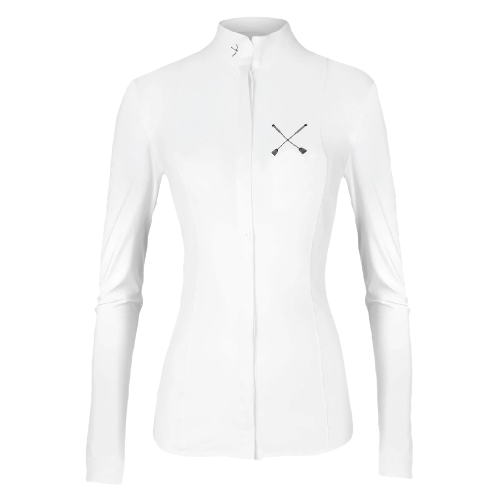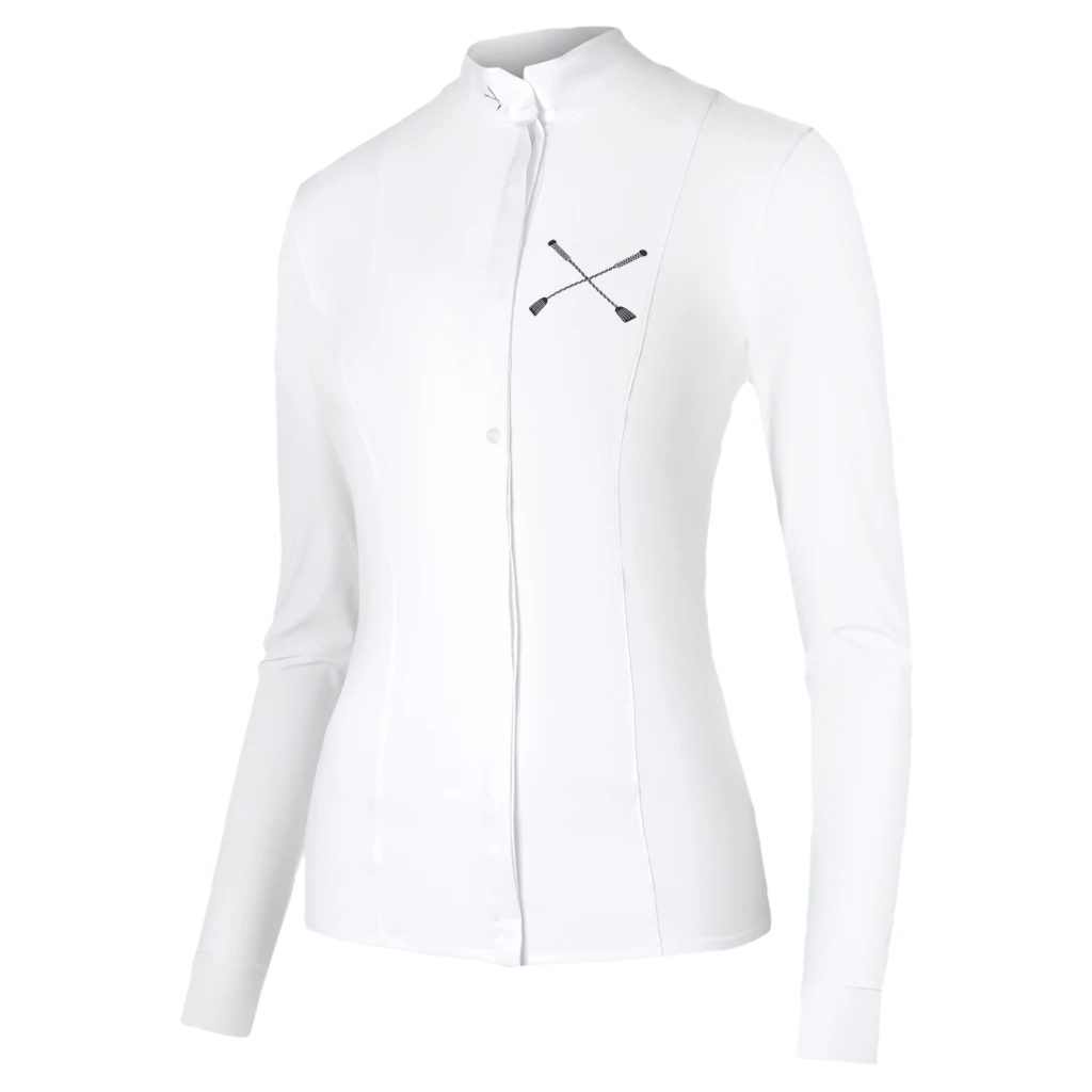 The women’s competition blouse Janne Whips of the brand Laguso belongs to the fall/winter collection 2022. It impresses with the sporty-elegant design and the functional properties. The ultra-lightweight and at the same time breathable, quick-drying and lint-free material ensures a high wearing comfort. The long sleeves are also owed a sun protection factor 50 on sunny days. The blouse was provided with a concealed button placket on the front. At the cuffs are additionally two buttons for a secure closure. Thanks to the waisted cut, the feminine figure is optimally emphasized. The competition blouse is decorated with the Laguso logo on the collar and the Whip print on the left chest. The Janne Whips competition blouse adds a special touch to your outfit at competitions and is also comfortable to wear.