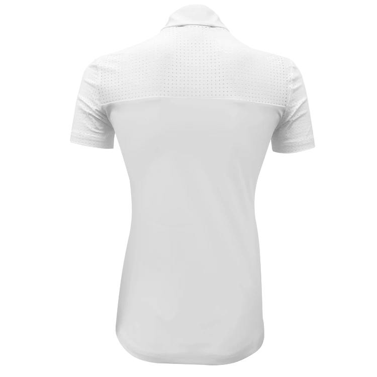 The short-sleeved Laguso Samantha Mesh tournament shirt is a real eye-catcher. The mix of materials rounds off the shirt optically and has many functional properties. The mesh inserts in the top and arms provide a chic look and good air exchange. The tailored cut emphasizes the contours of the body and allows maximum freedom of movement in active movement. Samantha has a stand-up collar with a zipper and a padded lip. As a small highlight, the Laguso logo is embroidered on the left sleeve.