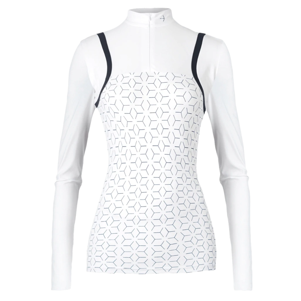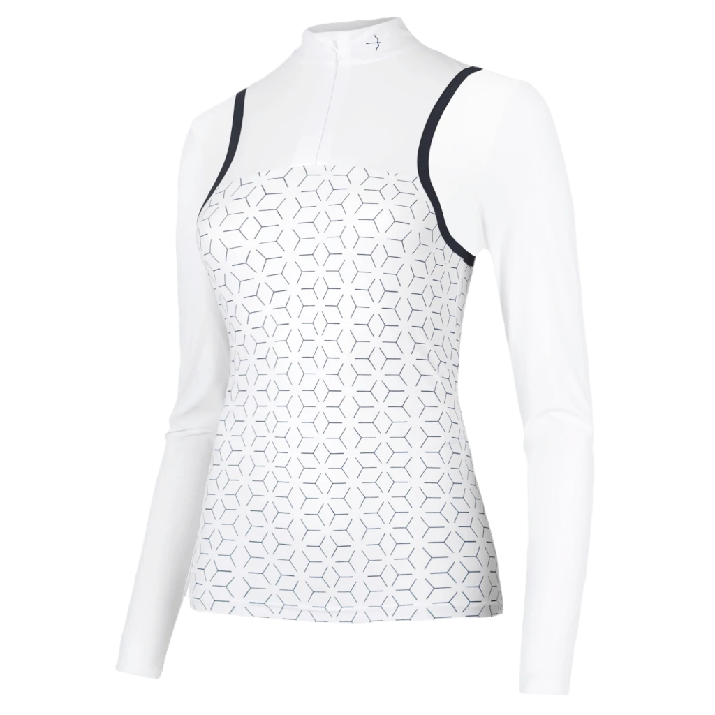 The Laguso competition shirt Savanna Allover is part of the fall/winter 2022 collection. The shirt speaks for itself with its functional features and sporty design. It is breathable, quick-drying, ultra-lightweight and lint-free which makes it very comfortable to wear. In addition, it offers a sun protection factor 50, as it has long sleeves. Easy and fast putting on and taking off is made possible by the stand-up collar with zipper and underlaid lip. Visually, the shirt also makes a nice sporty image. It is decorated with the allover print on the front and back as well as dark colored details in the shoulder area. The stand-up collar also features the typical Laguso logo while the Laguso lettering can be seen between the shoulder blades. The competition shirt Savanna Allover makes every outfit at the competition sporty and a special eye-catcher.