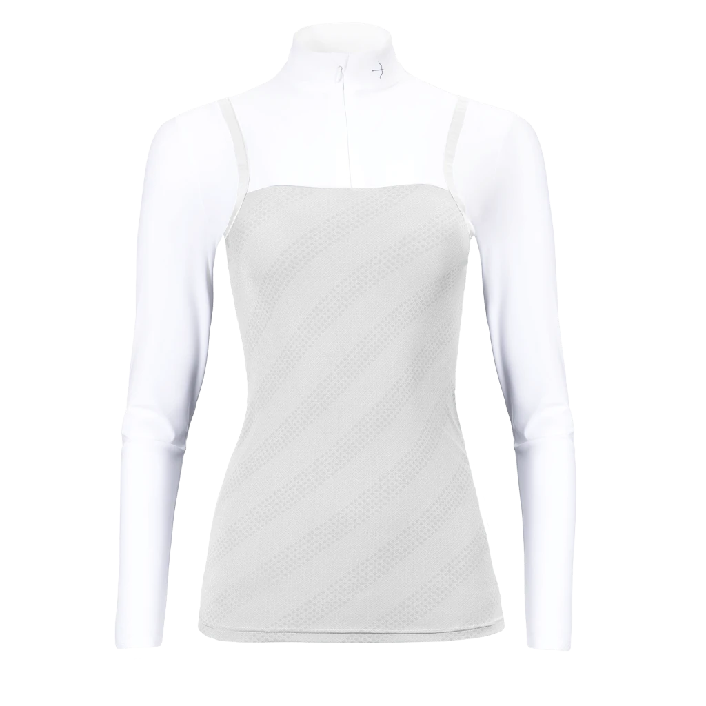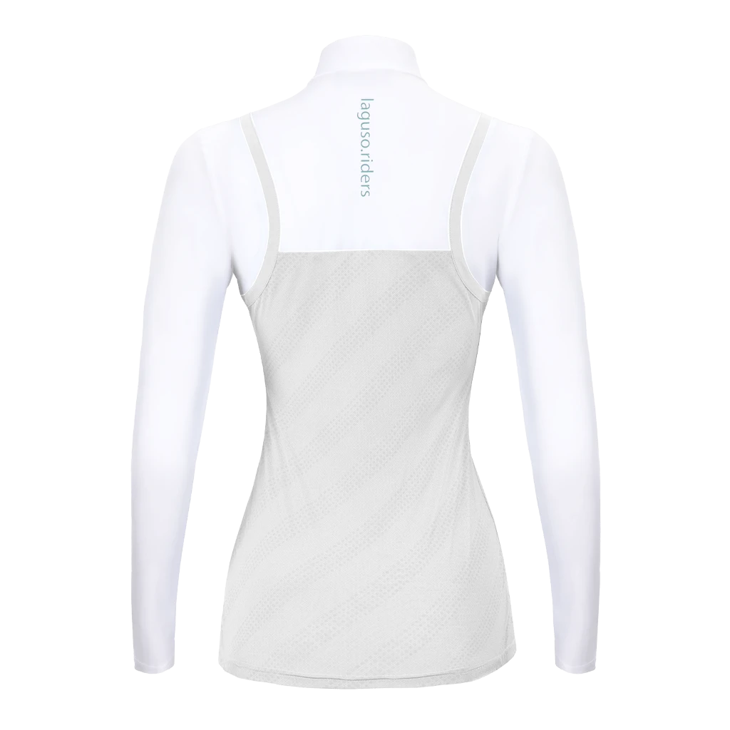 The Savanna competition shirt for women is from the 2022 Spring/Summer collection by Laguso. It is made of synthetic, bi elastic material and offers thereby a high wearing comfort. The colored inserts make this shirt an eye-catcher at any competition. The long sleeves and the sun protection factor 50 provide optimal protection. The zipper at the collar is sewn in hidden, so that the shirt can be conveniently put on and taken off quickly. It is also breathable and quick-drying, so moisture is absorbed away from the skin.