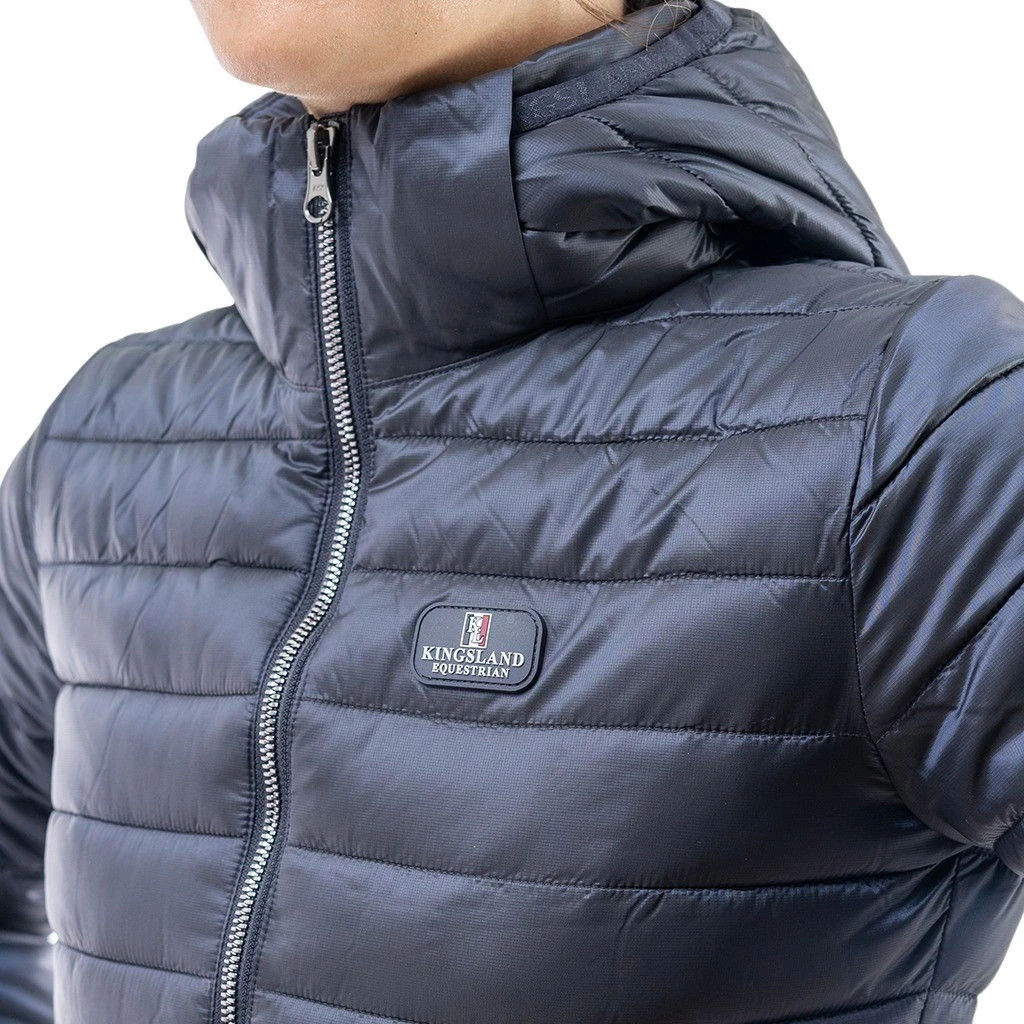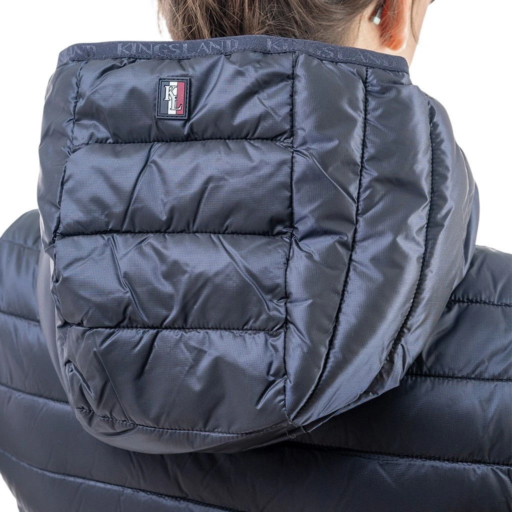 The Kingsland Women’s Jacket Classic Padded is a lightweight quilted jacket with shiny outer material from the Classic collection of Kingsland. The jacket convinces especially with its many functional features. It has a detachable hood, is also breathable and water-repellent. The 2-way zipper offers different wearing options, which is very clever especially in changing weather. There are furthermore two zippered front pockets and an inside pocket. An eye-catcher are the chic stitching and the logo patch, which can be seen in the area of the left chest.