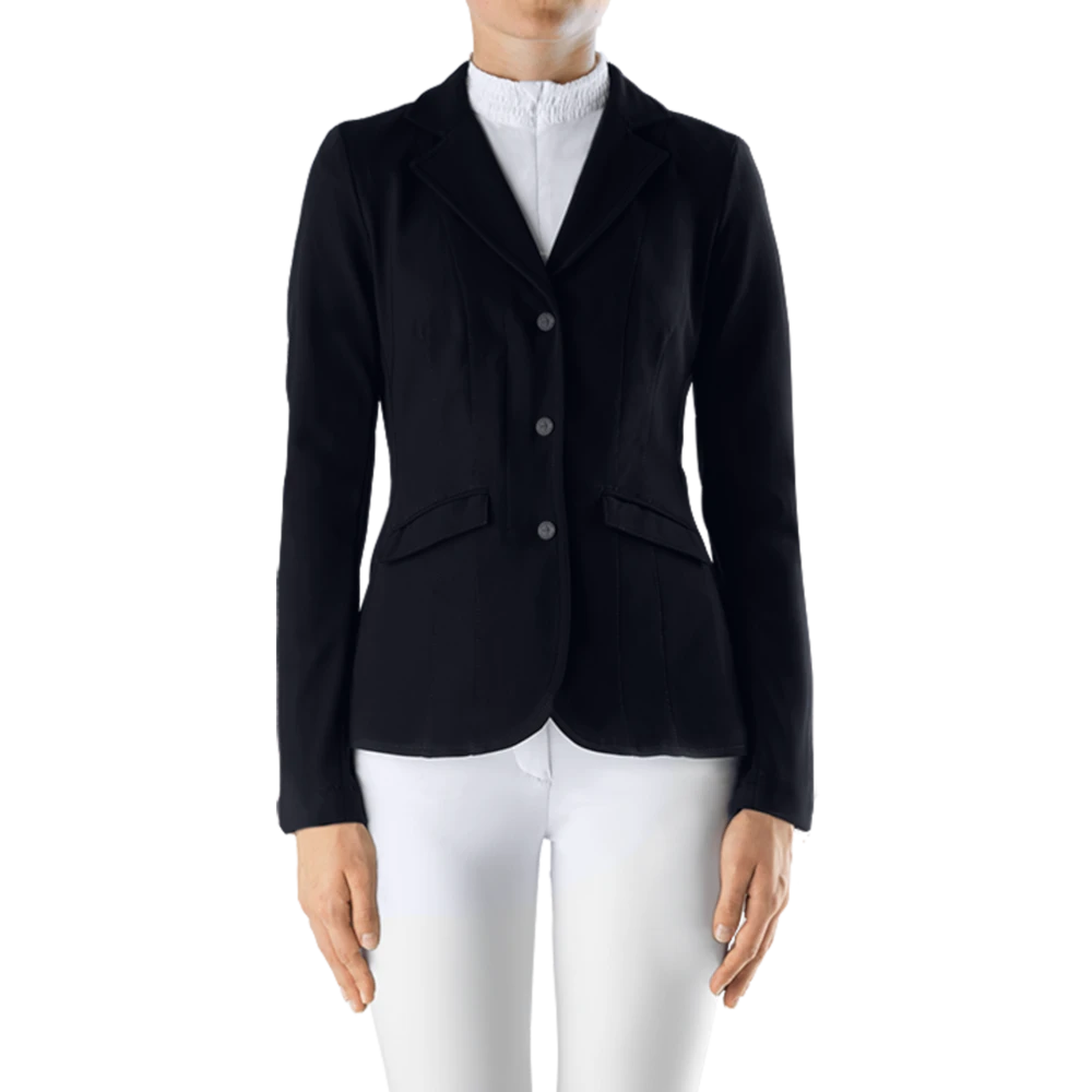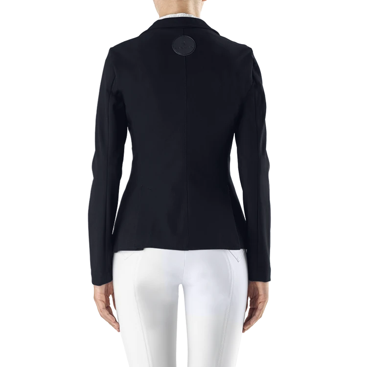 This high-quality tournament jacket is simple and elegant at the same time. The single-coloured fabric is made of the best materials and is water-repellent and quick-drying. Rain or snow are therefore no problem with this jacket. Furthermore, it has a sun protection factor of 50 and is particularly breathable. This means that moisture is absorbed away from the body and you have an excellent wearing comfort. The jacket can be closed with a zipper, but also with snap fasteners, so that it does not slip even during a fast ride. The super elastic Power Sport quality guarantees the best possible fit of the jacket. The tight waisted cut accentuates the figure magnificently and makes you a real eye-catcher.