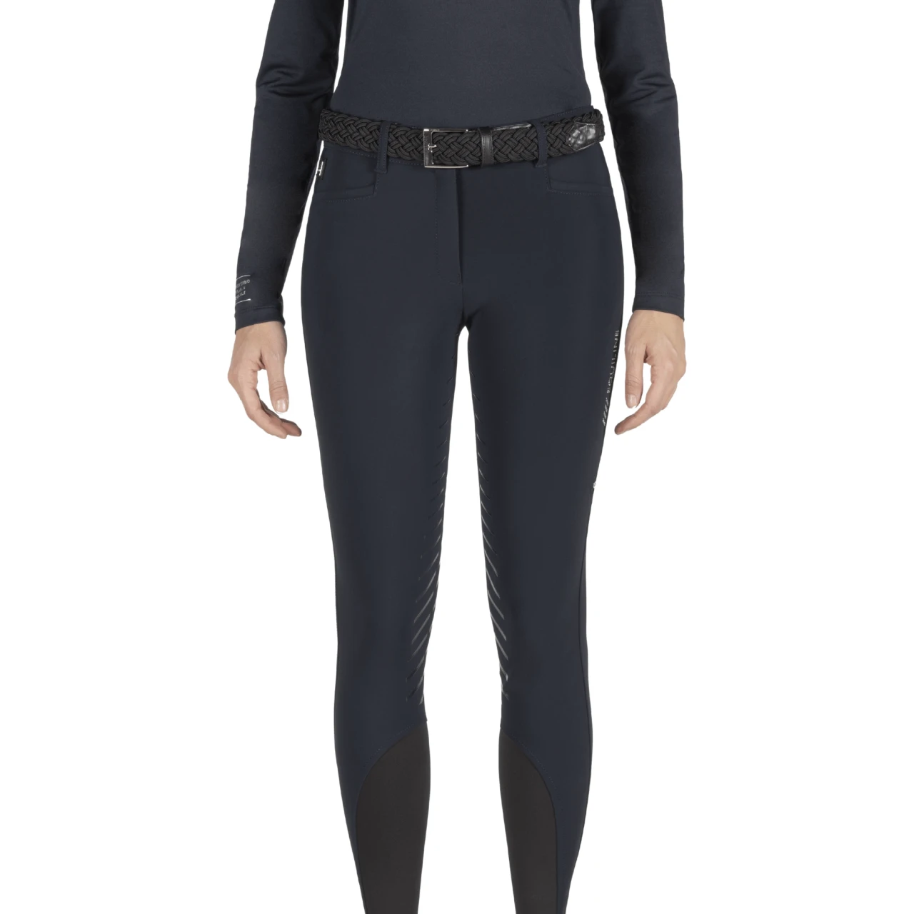 - convenient stretch fastening system on the bottom legs for an ideal fit and silver Equiline logo in micro-studs on the leg