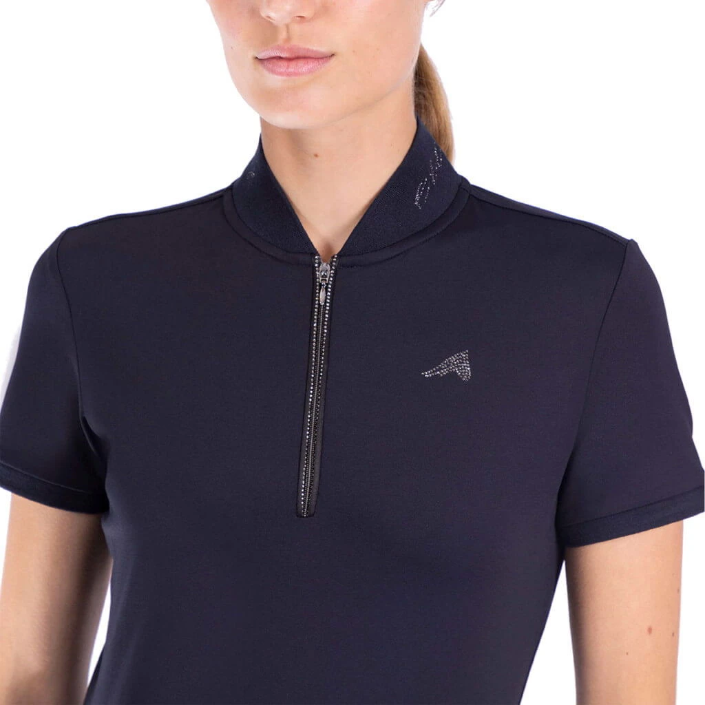 - lurex details on the cuffs and a rhinestone logo on the chest give the shirt an elegant look